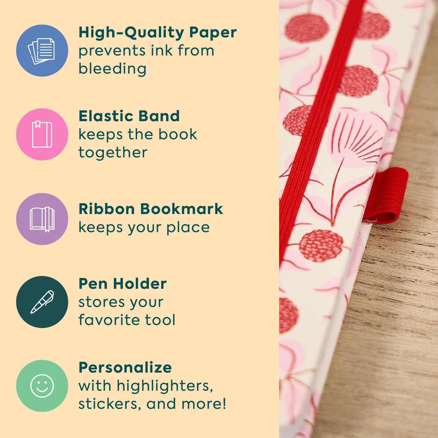 Happy Planner Small Undated Book-Bound Journal with 80 Pages of Thick 100 GSM Paper, A5 Size, Dot-Lined Layout, Feathered Floral
