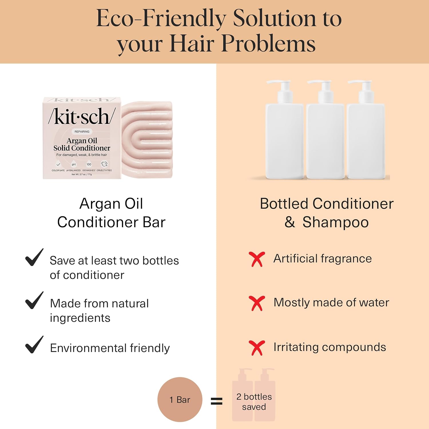 Kitsch Argan Oil Conditioner Bar – Repairing Hair Conditioner for Damaged Hair, Anti-Frizz – Strengthening, Moisturizing Hair Care – Paraben, Silicone & Sulfate-Free – Made in USA - 2.7 oz