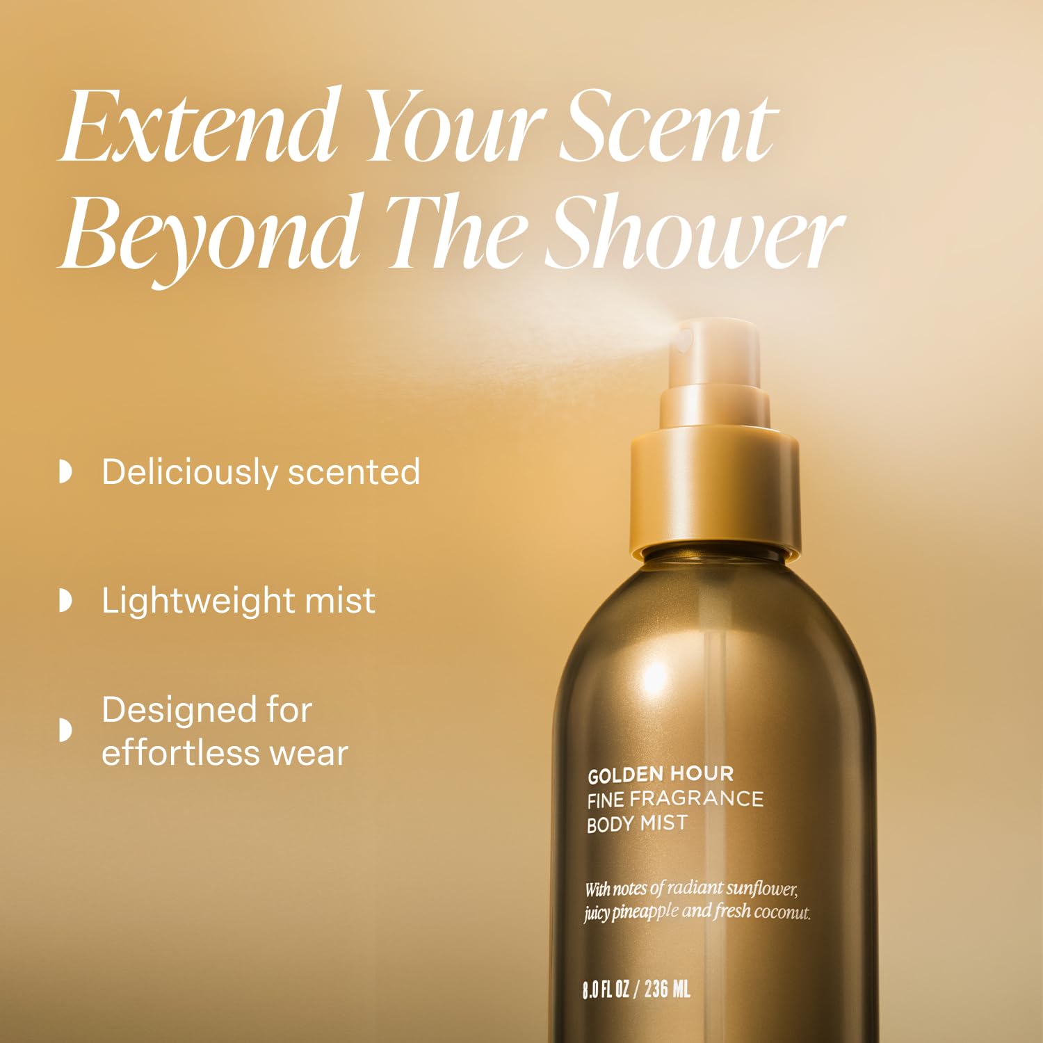 - GOLDEN HOUR FRAGRANCE: Radiant Sunflower, Juicy Pineapple, and Fresh Coconut is a bright and uplifting tropical blend, bursting with sunny florals, luscious fruit, and creamy, beachy warmth. Sun-drenched and enticing, Golden Hour transports you to a sun-kissed paradise.