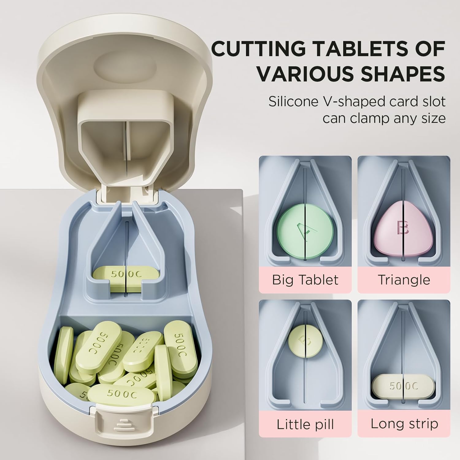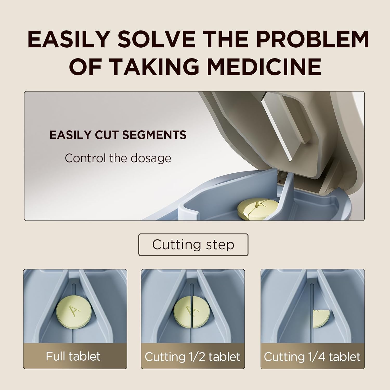 - 【EASY TO USE & PORTABLE】Pill Cutter Cutting Size as Small as 0.08 in. Human & pet friendly.Designed for convenience, this pill organizer features easy-open lids, making it perfect for on-the-go use. Take your vitamins, medication, or supplements anywhere in bag.