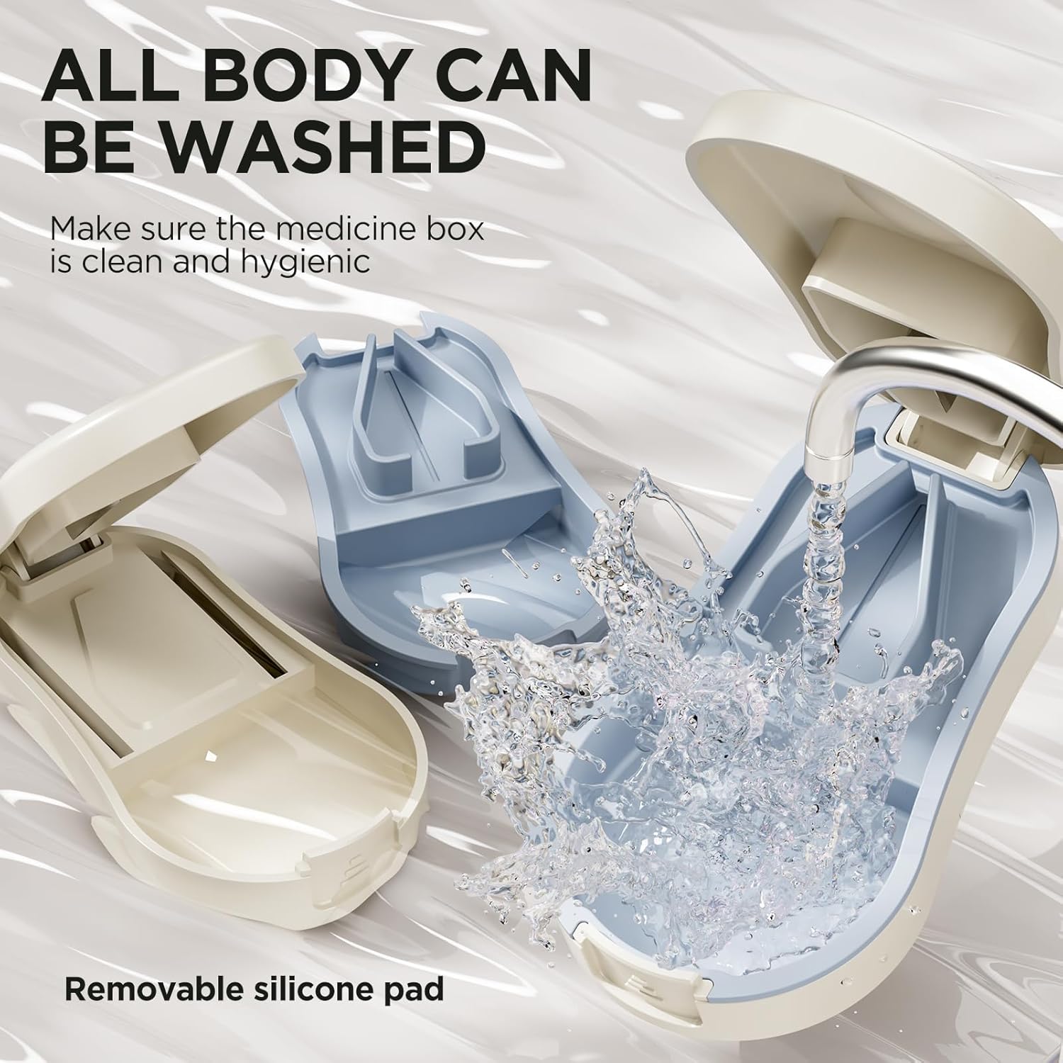 - 【Easy to disassemble and wash】The whole body is washable, while the built-in silicone pad is removable, easy to clean the pill cutter, convenient to keep clean and hygienic. Small Cleaning Brush is used to clean the crushed powder and avoid medication mixing.