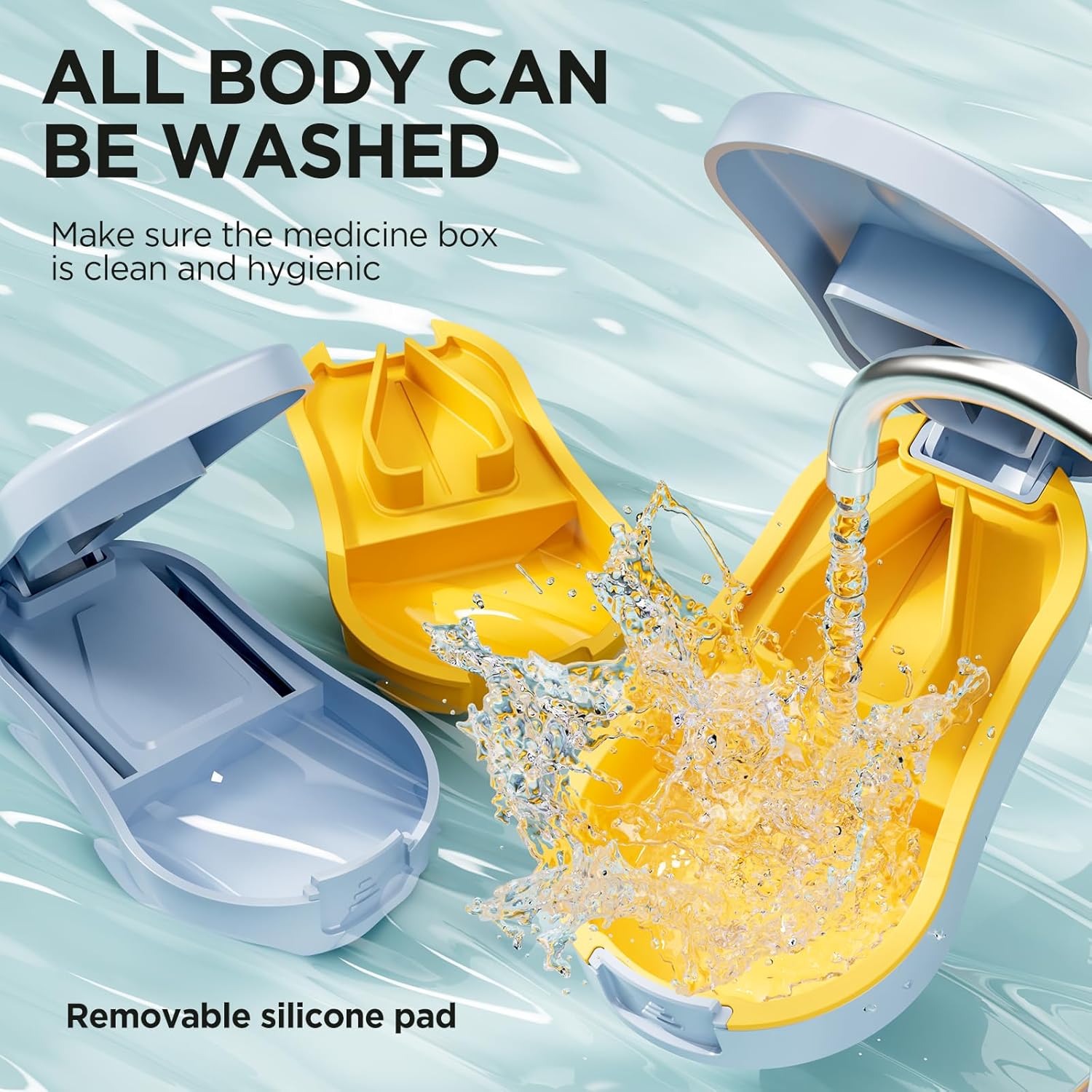- 【Easy to disassemble and wash】The whole body is washable, while the built-in silicone pad is removable, easy to clean the pill cutter, convenient to keep clean and hygienic. Small Cleaning Brush is used to clean the crushed powder and avoid medication mixing.