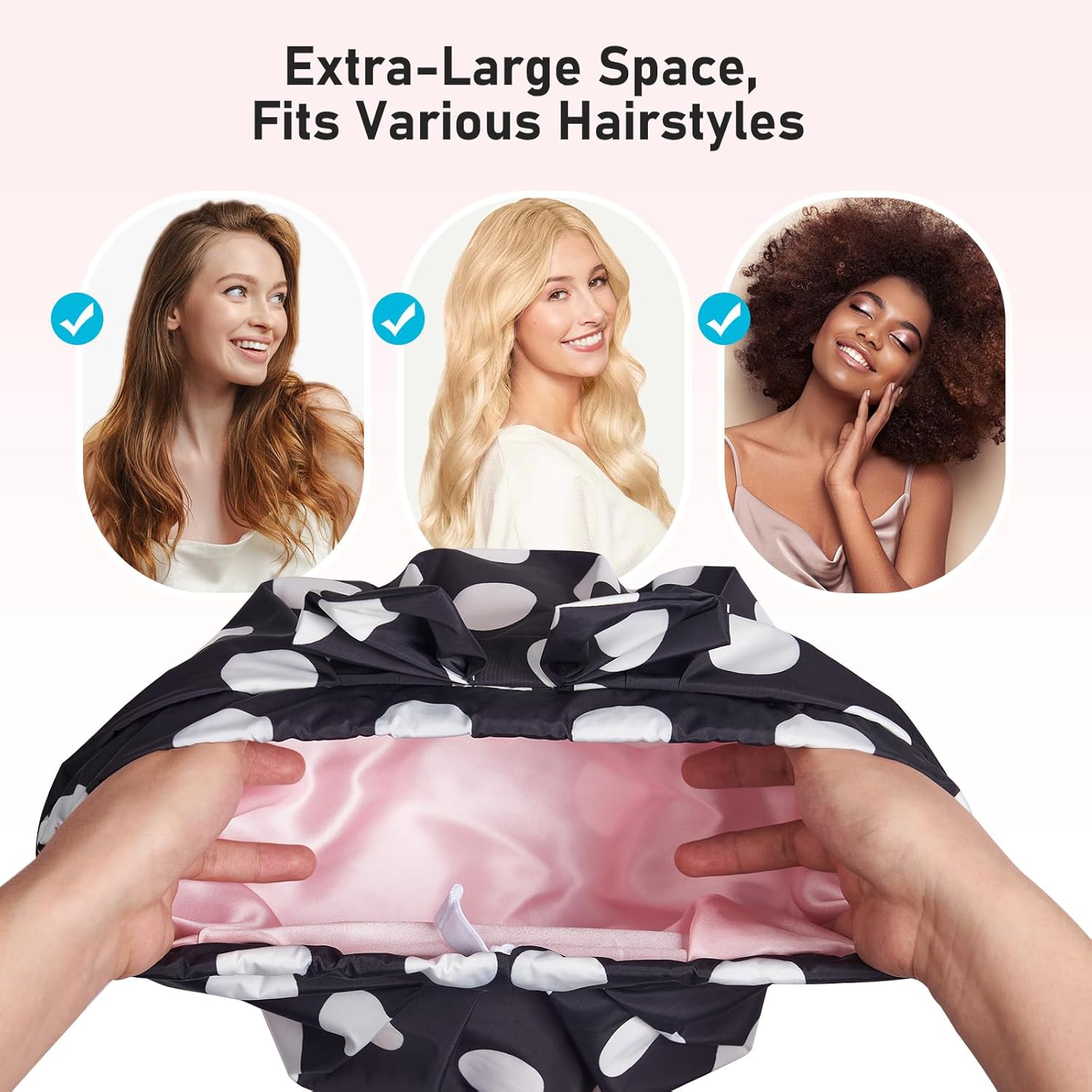 - Spacious & Multi-Purpose: Comfortably fits various hair types, including thick, long, and curly styles. Whether you're showering or doing your beauty routine, this cap provides full coverage without squeezing or slipping