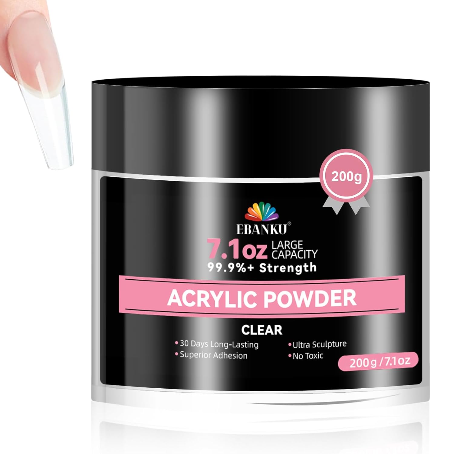 - 【High-Capacity Acrylic Powder】EBANKU 200g/7.1oz big capacity clear acrylic powder can satisfy you for many times using, and is perfect as base color, feel free to DIY nail art for nail extensions design.