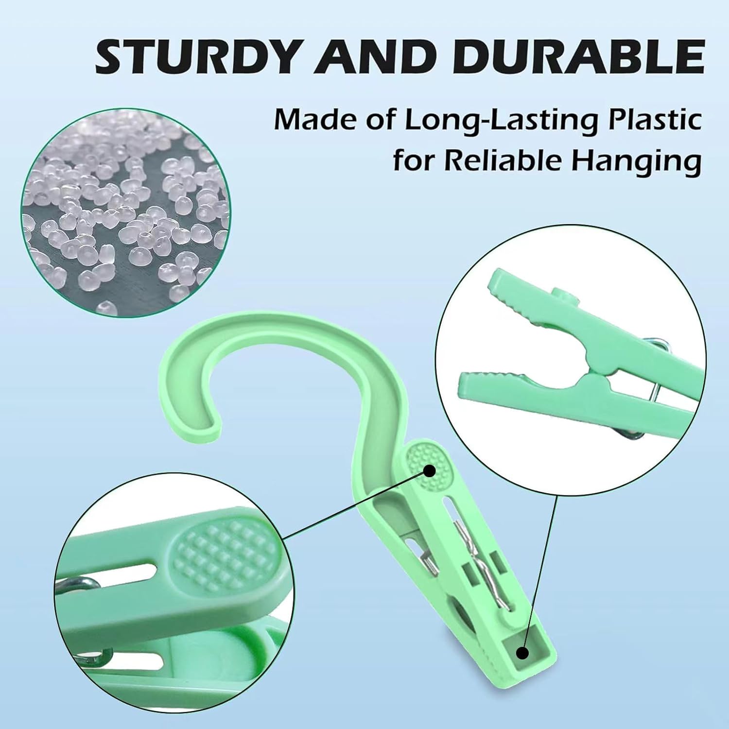 - DURABLE DESIGN: These clothespin hooks are made from long-lasting plastic, sturdy enough to hang socks, towels, swim suits and trunks, lingerie, mittens.
