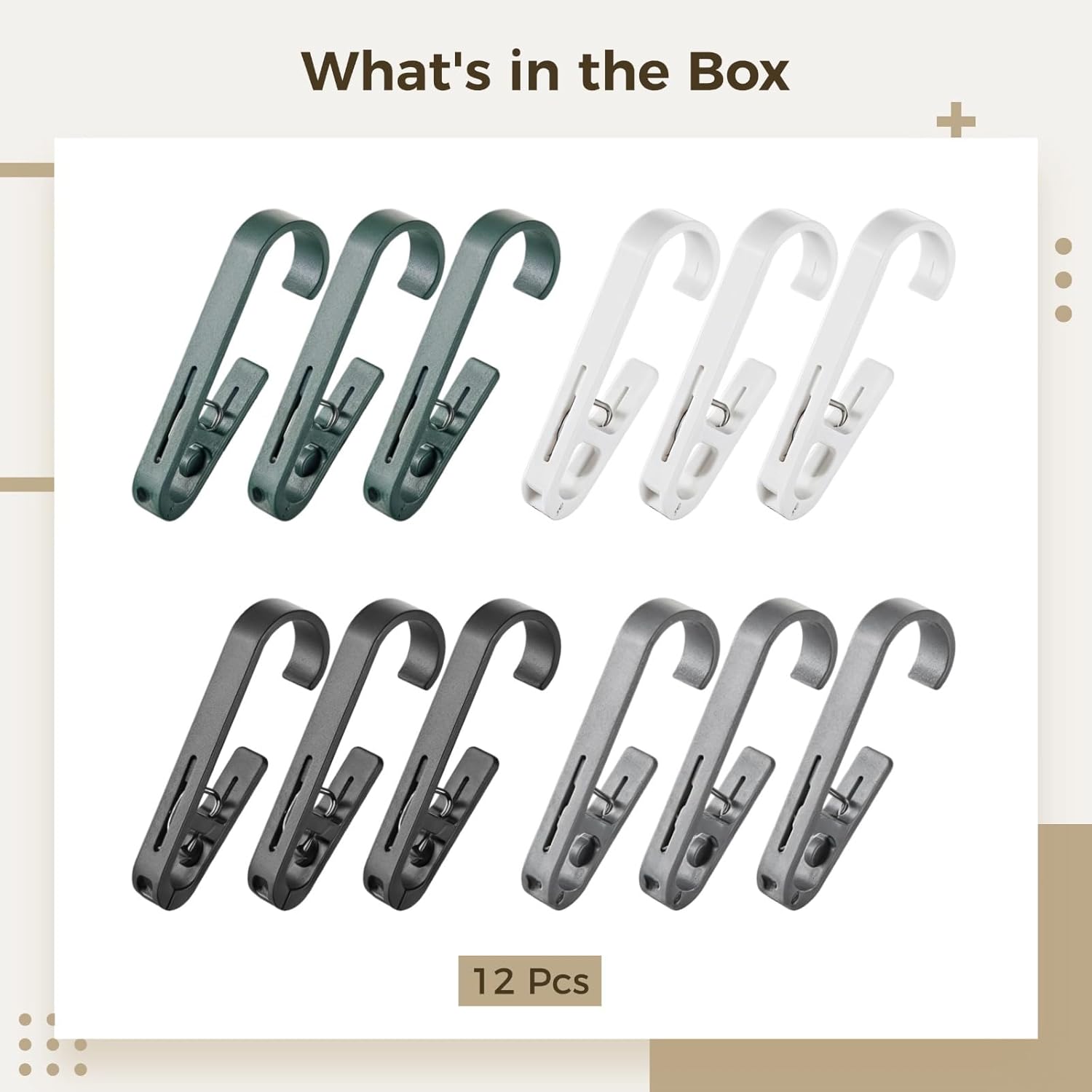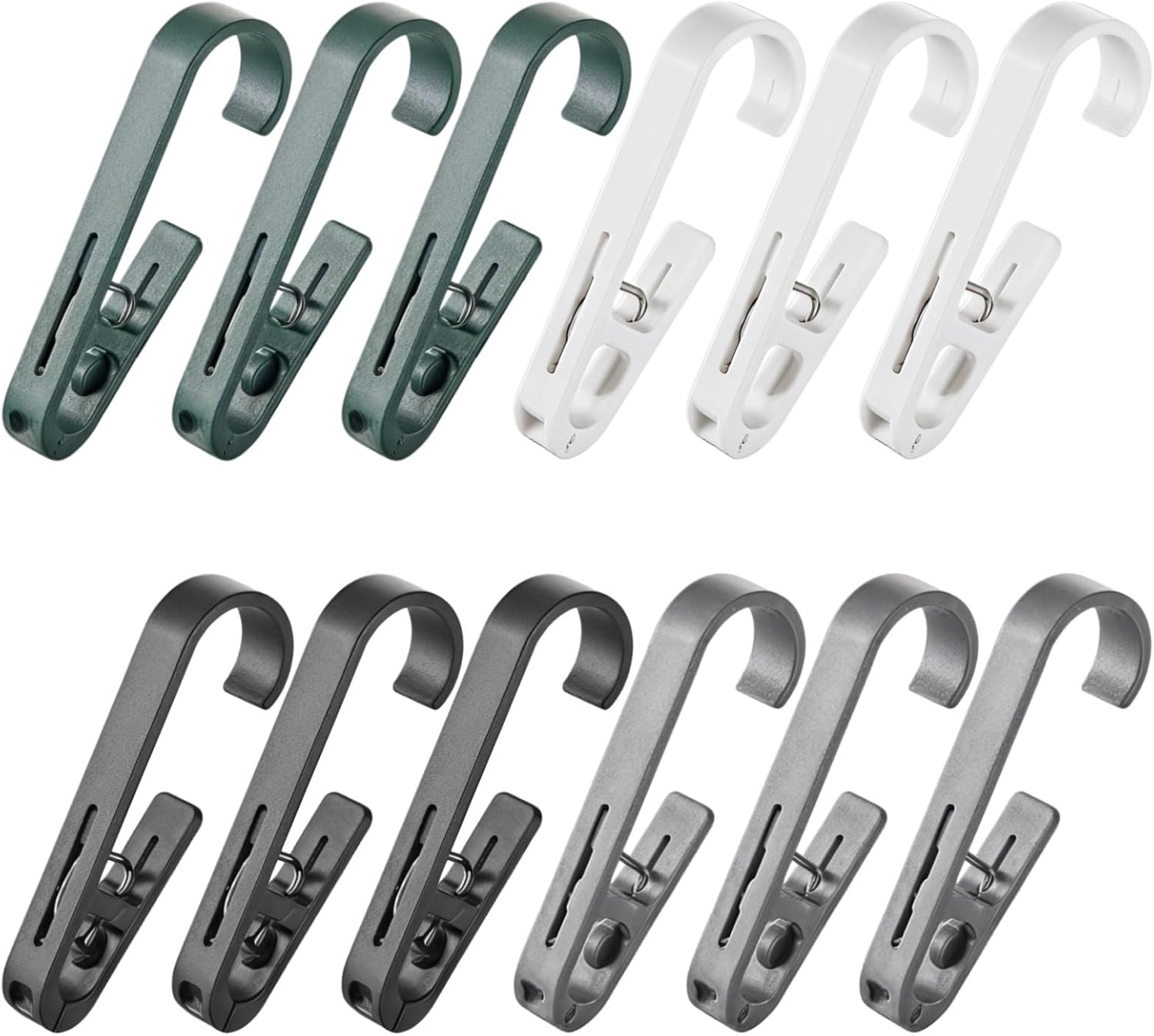 Large Clothes Pins Towel Clips 12 Pcs, Large Shower Curtain Hooks, Plastic Hanging Clips for Bathroom Shower Curtain Laundry
