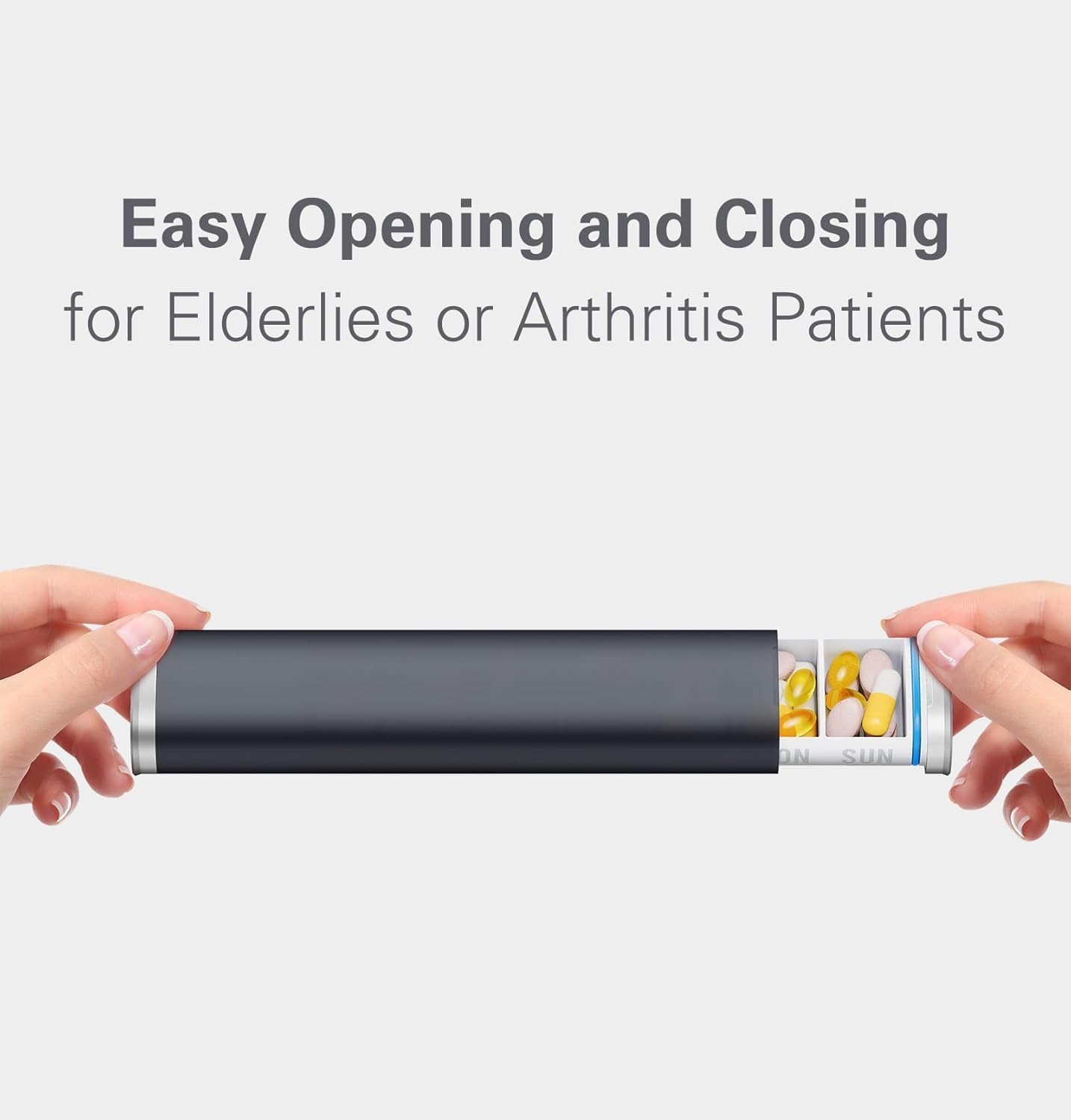 - 【Drawer-Slide Weekly Pill Organizer】Our compact 7 day pill organizer features seven slots with an ergonomic, drawer-slide design for easily use—ideal for travel and easy to open for seniors or anyone with arthritis