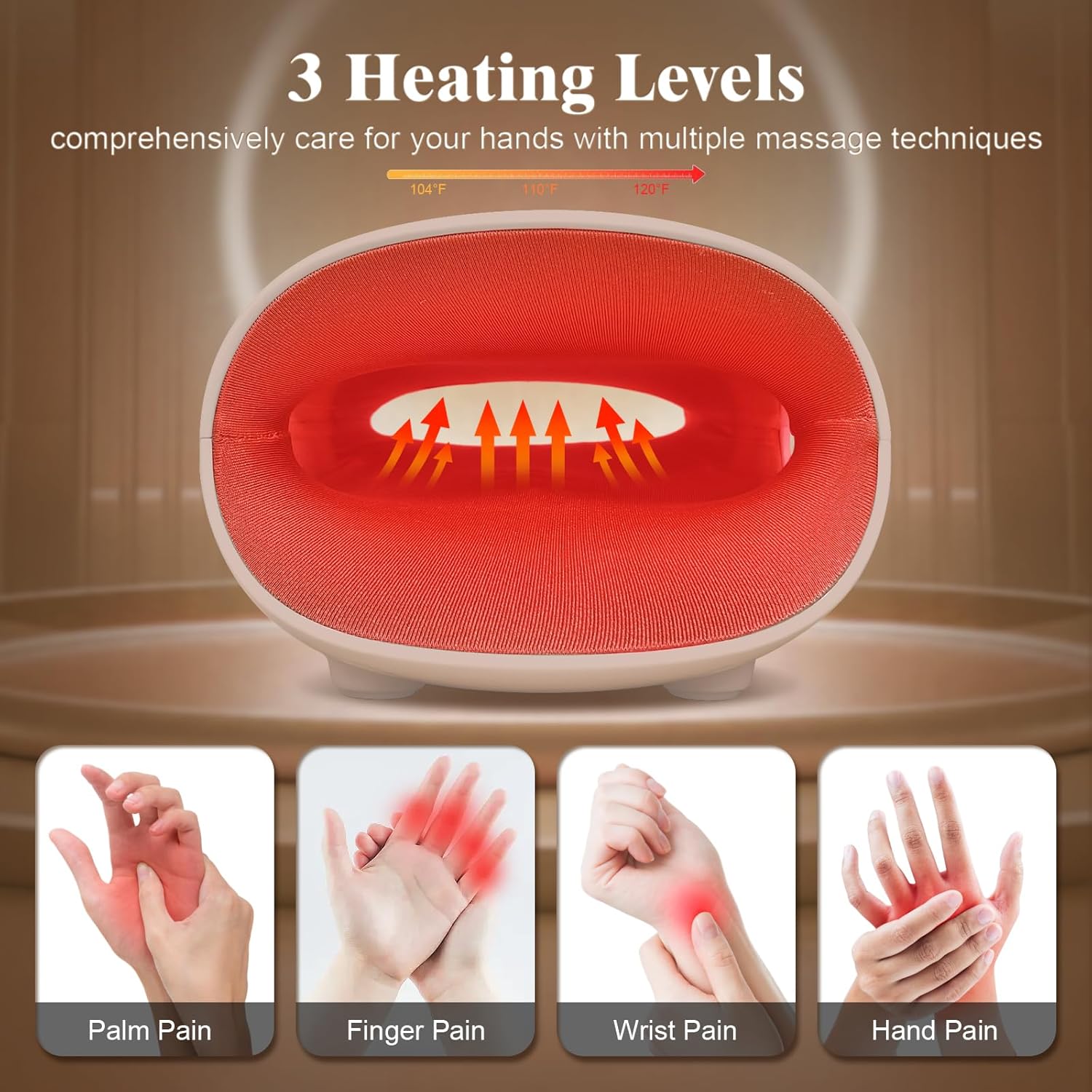 - Therapeutic Heating Technology: Includes 3 soothing heat therapy levels, designed to enhance blood circulation and relieve muscle tension, significantly improving overall comfort during your hand massage sessions.