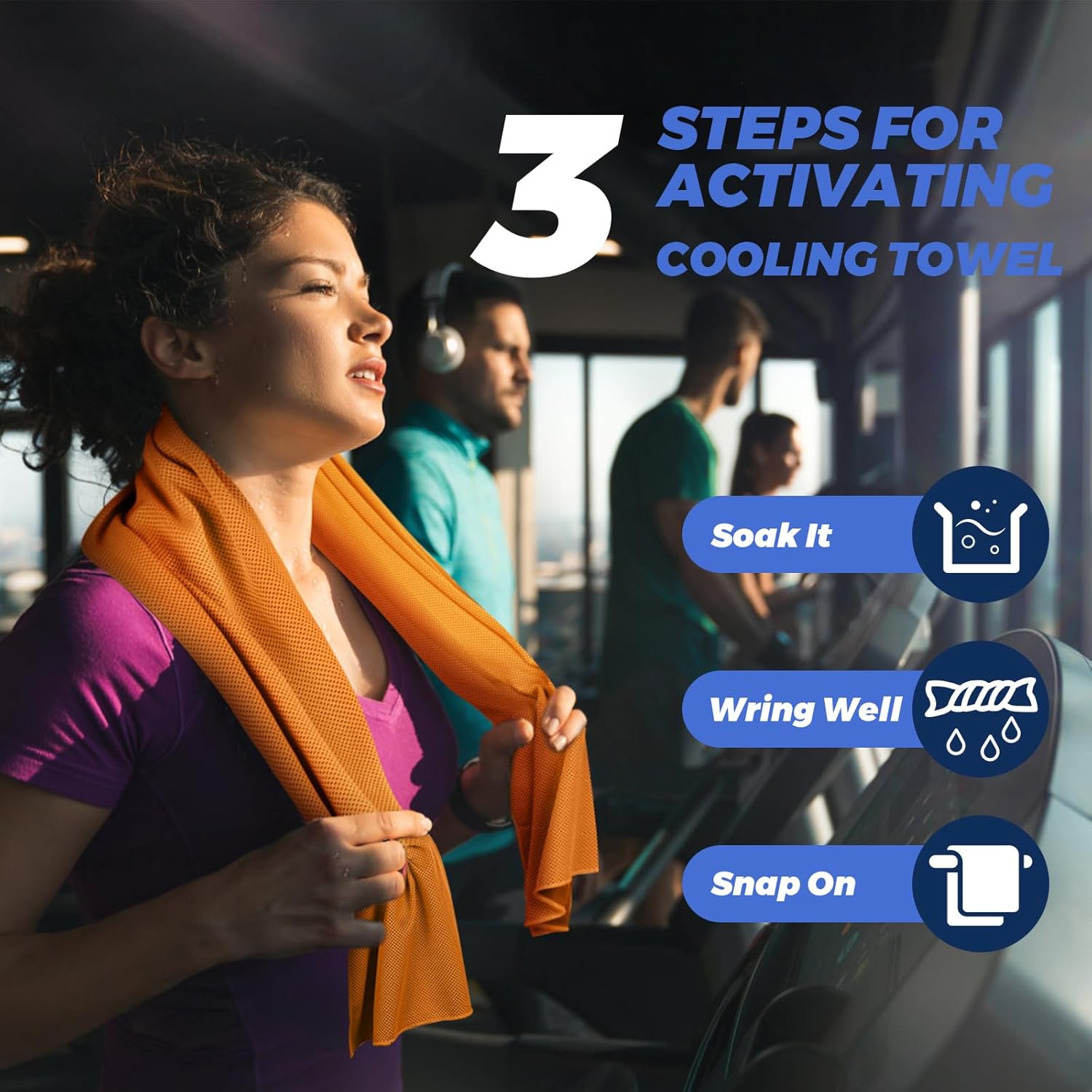 - Instant Cooling towels - The innovative fabric provides instant relief for two or more hours, helping to regulate your body temperature while drawing sweat away. Just get it wet, wring it out, and snap it a few times to activate the cooling, moisture-wicking technology. Compared to ordinary towels , it was lightweight and soft enough that it didn't get in the way when you exercise.