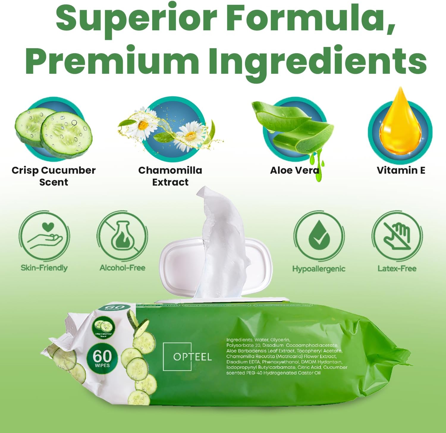 - SCENTED WITH A REFRESHING CUCUMBER TOUCH – These adult wipes offer a light, soothing cucumber scent for a fresh, clean feel. Infused with aloe vera and vitamin E, they gently cleanse and nourish sensitive skin, making them perfect for incontinence care, elderly hygiene, and daily refreshment.