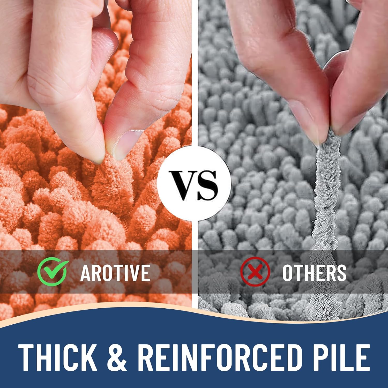 - Anti-Skid Backing: Arotive chenille bathroom rugs feature a non-slip bottom consisting of sturdy mesh PVC material that stops the bath mat from shifting and skidding. The middle layer is 4 mm memory foam, which can let you feel more comfortable when wrapping into the rugs. WARNING: Place bath mat on CLEAN DRY FLAT FLOOR ONLY. Water under bath rug can cause it to slip. Always keep the bottom of bath rug dry
