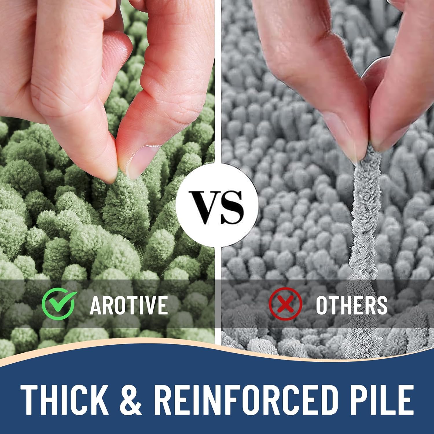 - Anti-Skid Backing: Arotive chenille bathroom rugs feature a non-slip bottom consisting of sturdy mesh PVC material that stops the bath mat from shifting and skidding. The middle layer is 4 mm memory foam, which can let you feel more comfortable when wrapping into the rugs. WARNING: Place bath mat on CLEAN DRY FLAT FLOOR ONLY. Water under bath rug can cause it to slip. Always keep the bottom of bath rug dry