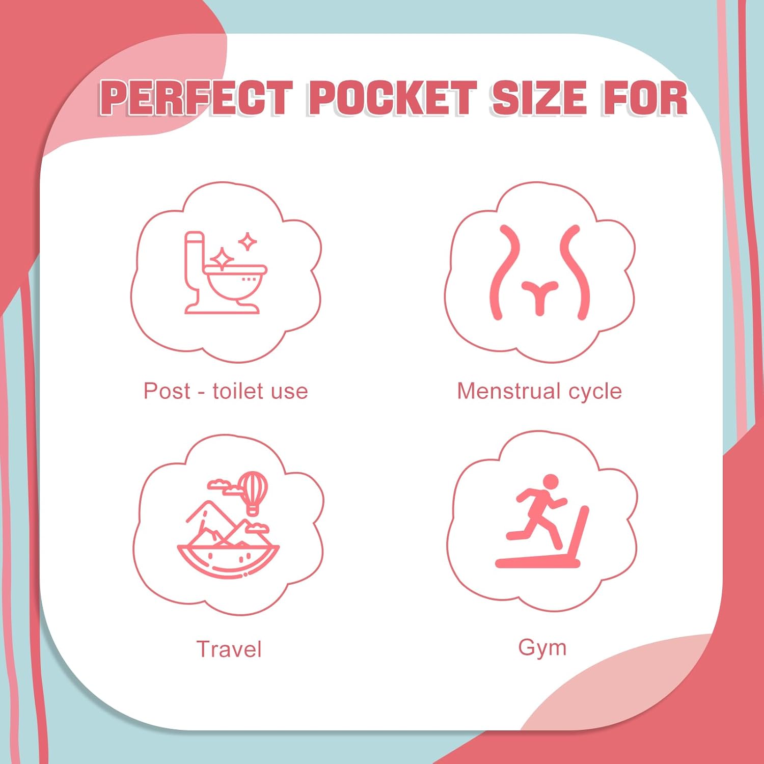 - Leak-Proof & Oversized Sheets - With upgraded leak-proof technology, GUIDDBELLA feminine wipes feature oversized dimensions of 8.27" x 5.31" (210mm x 135mm) for maximum coverage, durability, and discreet protection. The expanded sheet size ensures thorough cleansing while resisting tears, offering reliable hygiene support
