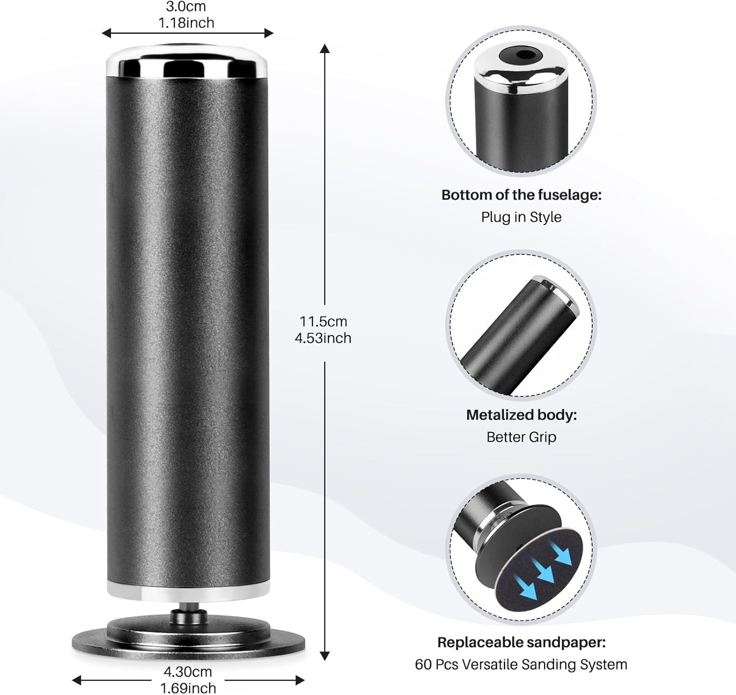 Foot File Callus Remover for Feet: Profesional Pedicure Tool for SPA - Adjustable Speed Feet File Grinder for Skin and Calluses - with 60 Pcs Replacement Sandpaper Disk for Home Salon(Black)