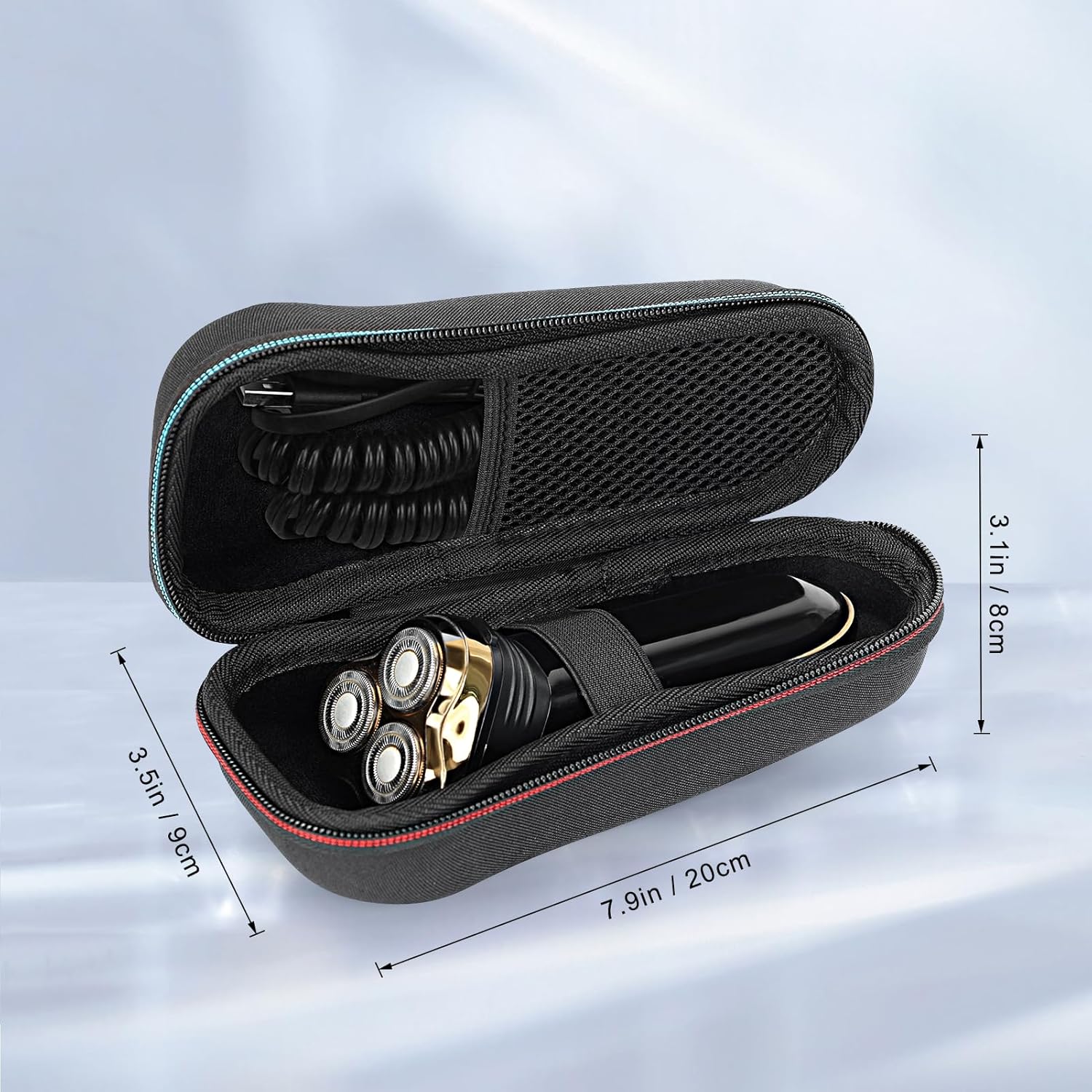 - Design-New : SyuCeia electric shaver case has a superior zipper, which is smooth and durable, easy to open and close. Build-in mesh bag is convenient to storage charger and accessories and with a hand strap.