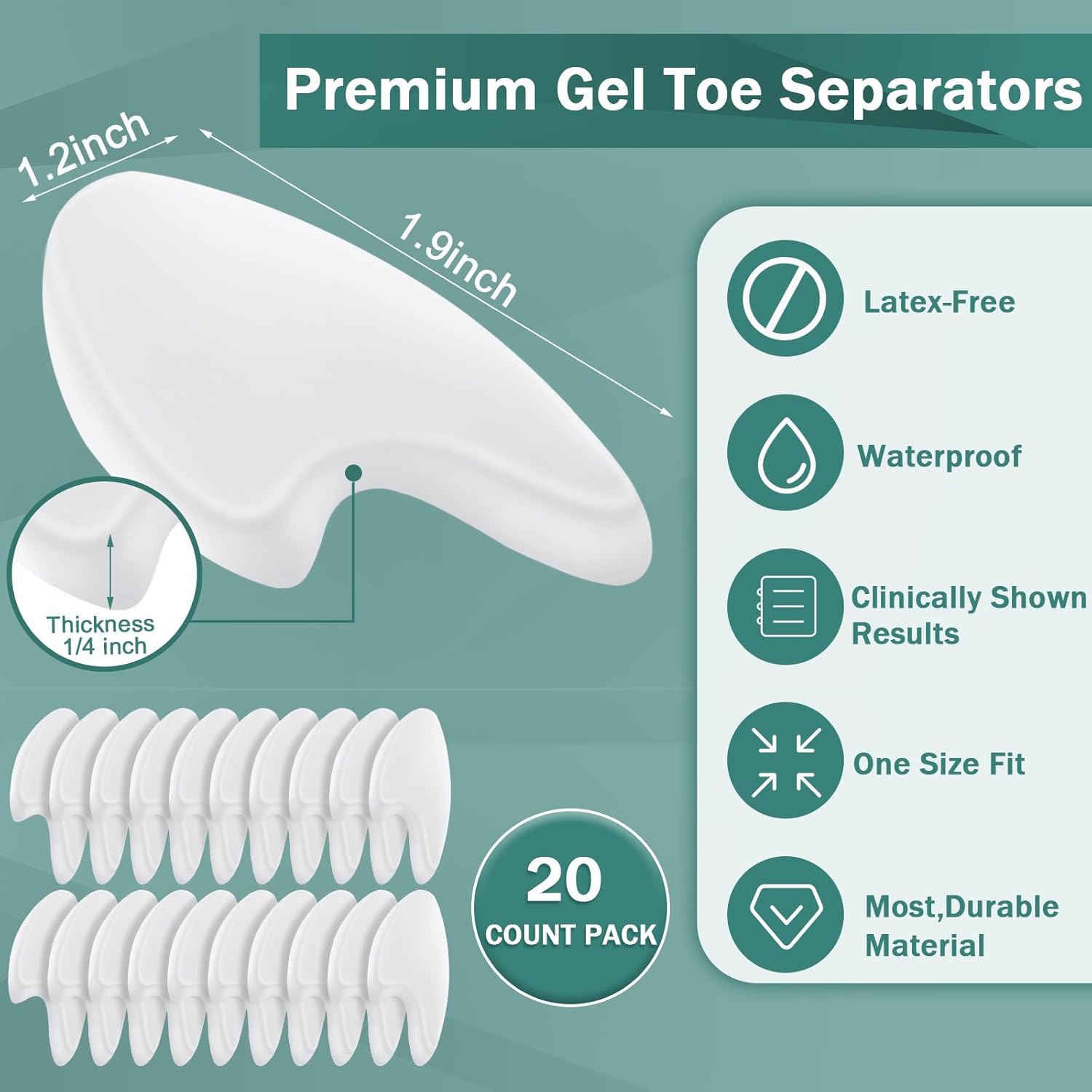 - Convenient Packaging: this pack includes 20 small mineral oil-infused toe wedge pads; These reusable layer toe separators are commonly known as toe straighteners