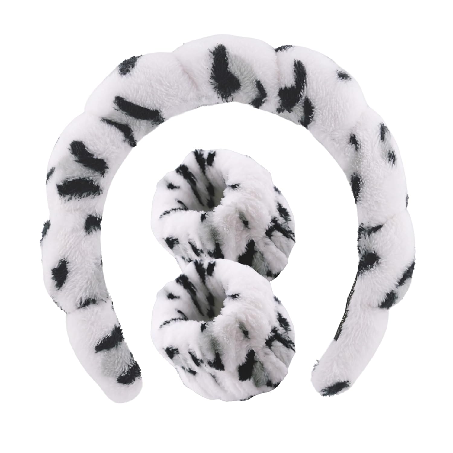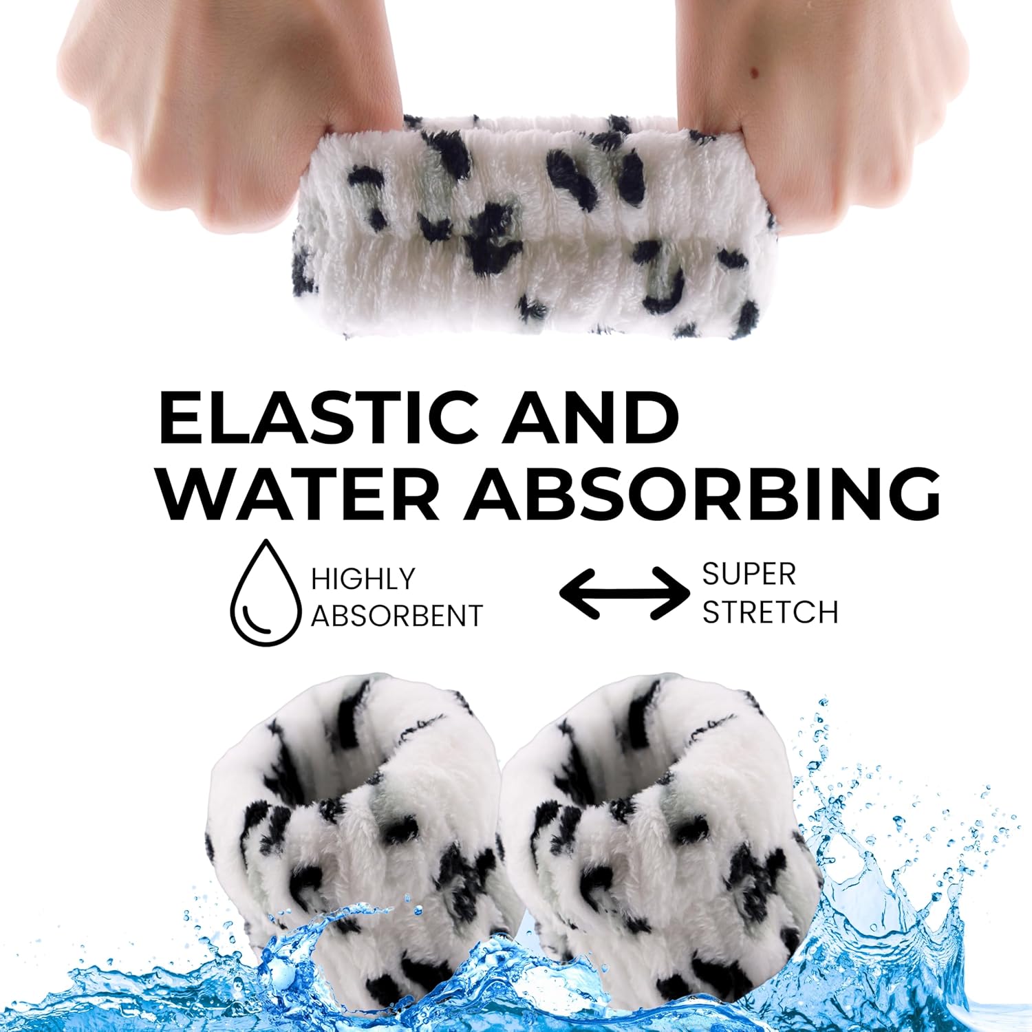 Spa Headband Wrist Band for washing face set Sponge Makeup Skincare Headband Wrist Towels Bubble Soft Terry Towel Cloth Hairband for Women Puffy Headwear Non Slip Thick Thin Hair Headwear (Leopard)