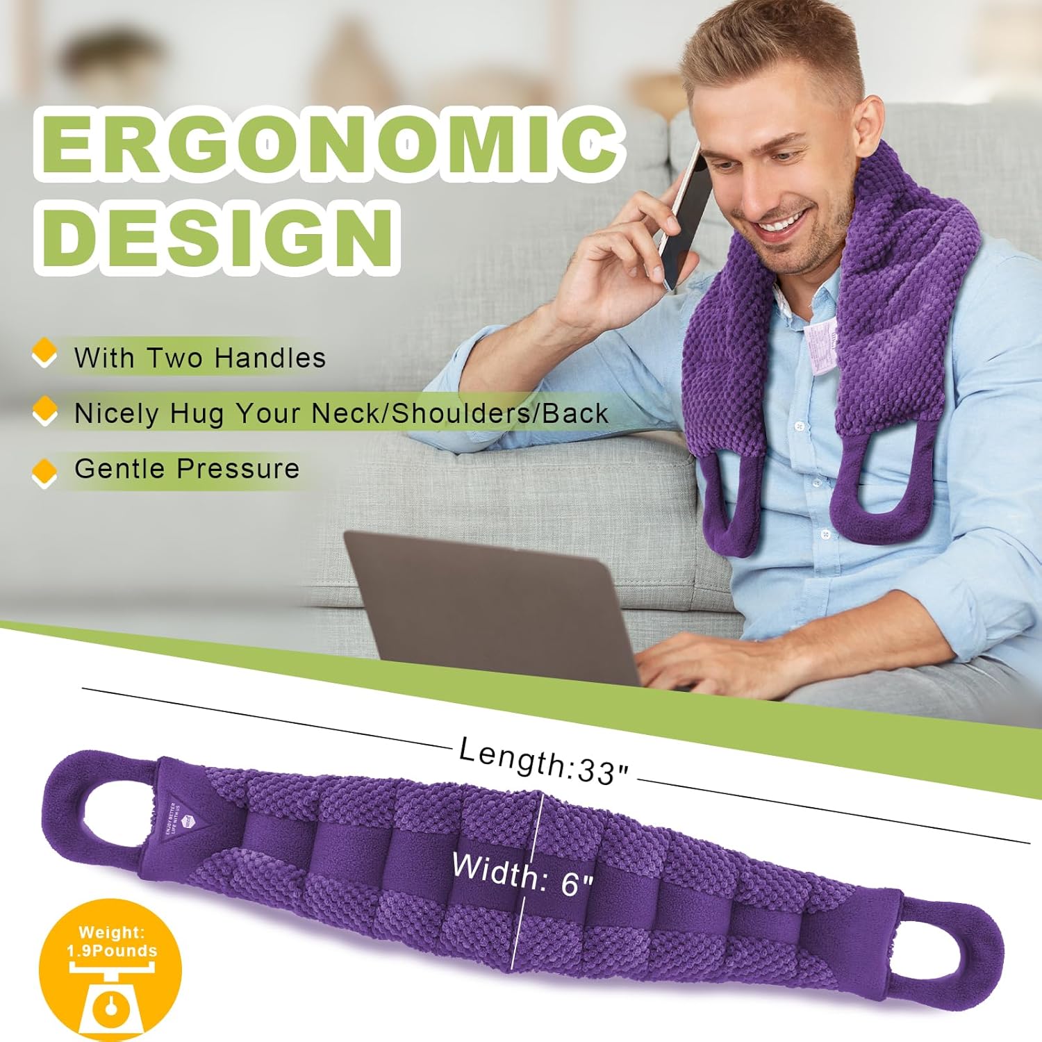 UNCN Long Heating pad for Neck and Shoulders Back 33 * 5.9" microwavable Large Moist Heat Pack Warm hot Compress Neck wrap Weighted Bag Massage Reusable Herbal Nature Calming Portable