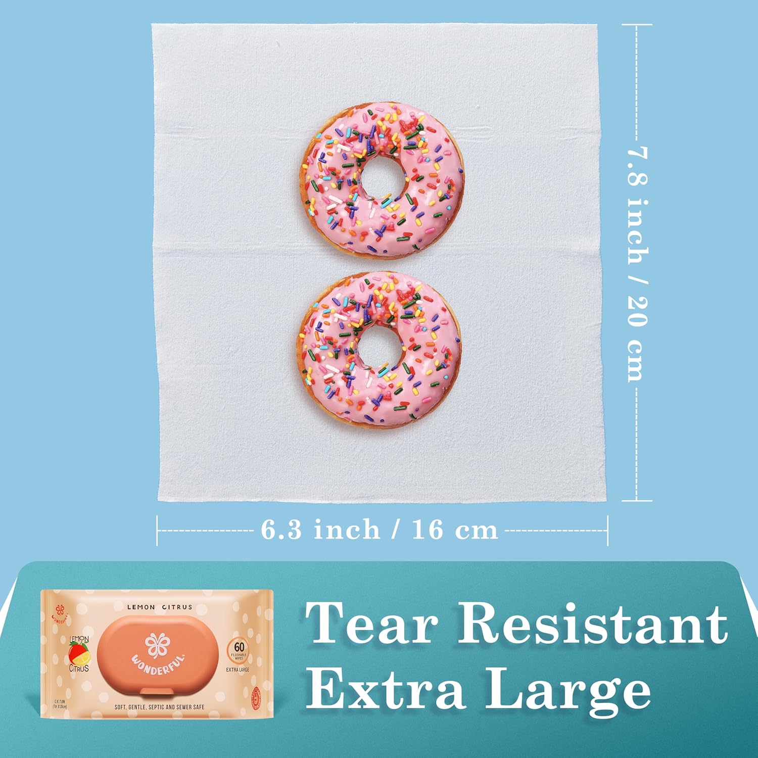 - đ EXTRA-LARGE & CONVENIENT: Each butt wipe measures 6.3 x 7.8 inches, providing full coverage for superior cleaning. Fold them for multiple uses without needing a stack of wipes. Each order includes 1 pack (60 wipes total), making it perfect for both family and travel needs. The flip-top lid ensures every wet wipe stays moist from the first to the last.