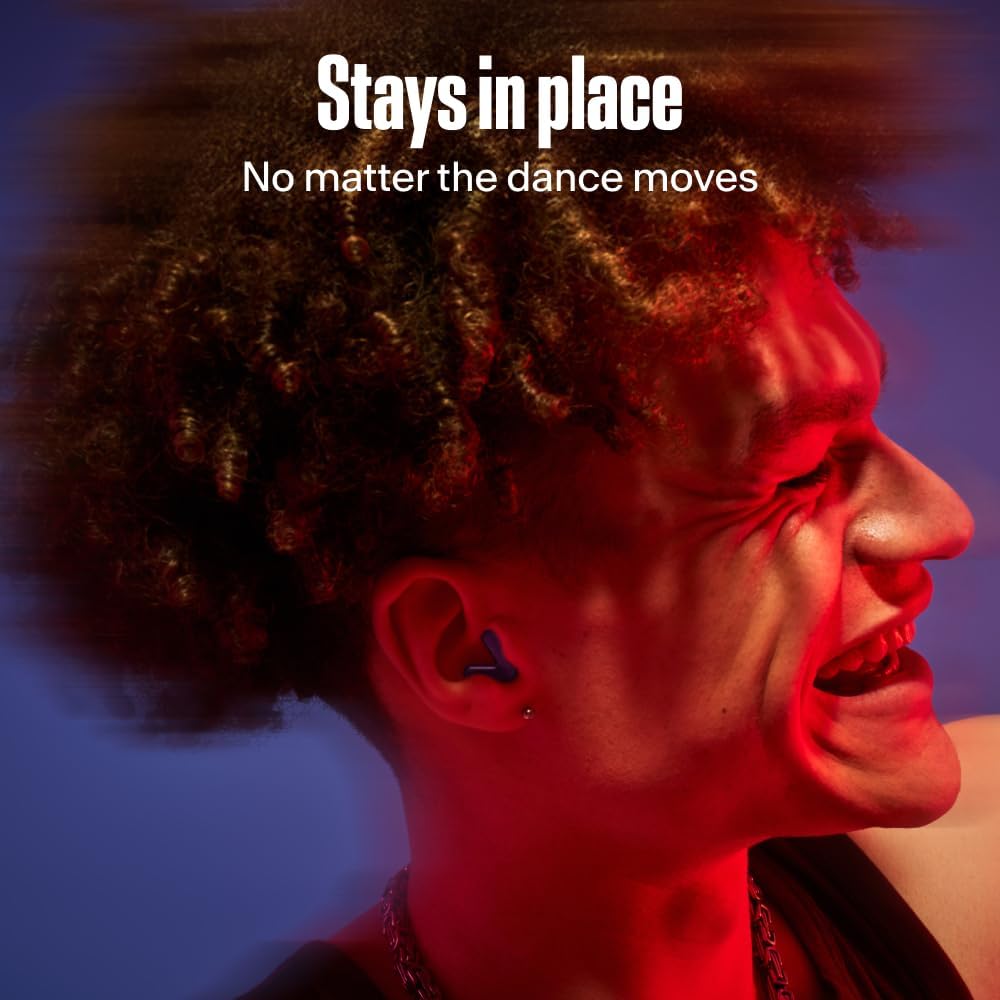 - UNPARALLELED COMFORT – Soft oval tips in 4 sizes + ergonomic fit for all-day wear. Pressure-free and secure – they stay put through every set, even when the bass drops