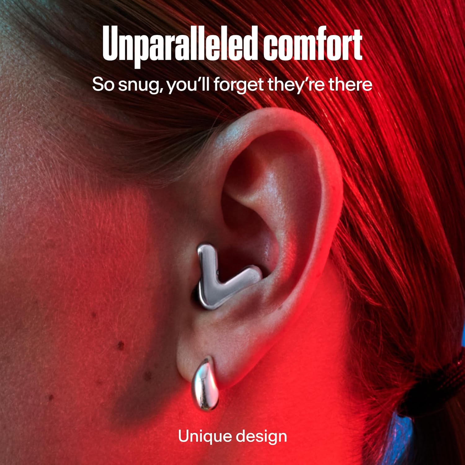 - UNPARALLELED COMFORT – Soft oval tips in 4 sizes + ergonomic fit for all-day wear. Pressure-free and secure – they stay put through every set, even when the bass drops