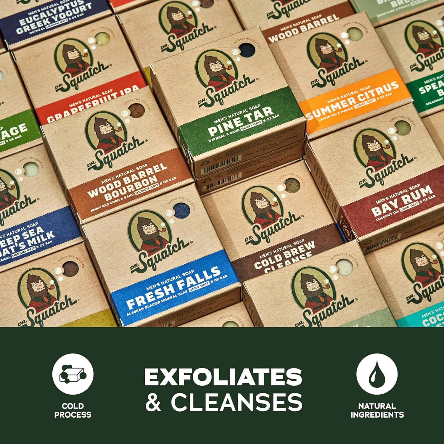 - RAISE THE BAR - Upgrade your shower with our sudstastic soaps featuring Dr. Squatch’s favorite scents: Sierra Storm, Sandalwood Summit & Birchwood Breeze