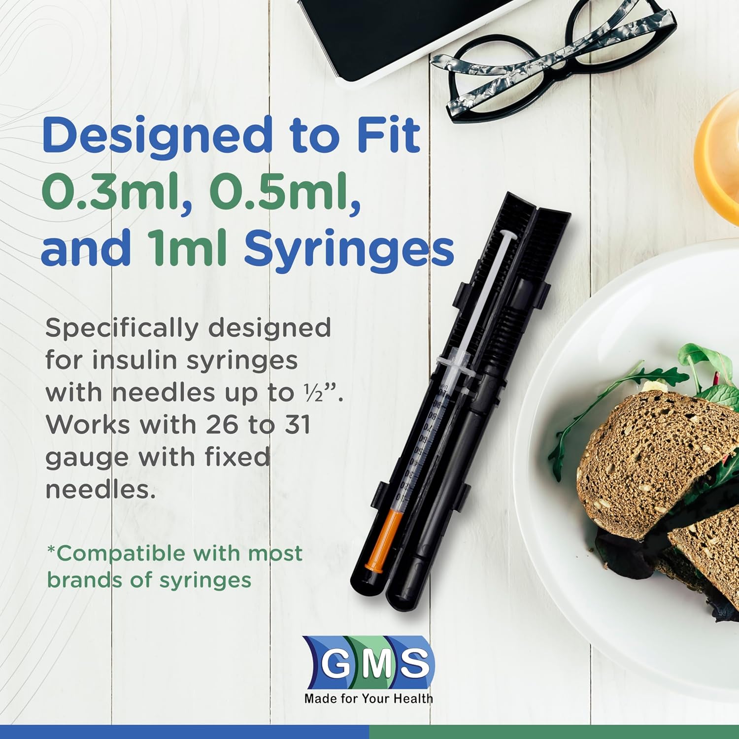 GMS 100 Unit Syringe Case - Holds New, Used & Prefilled Syringes with Needles, Small & Discreet, Ideal for Travel - 2-Pack - Black