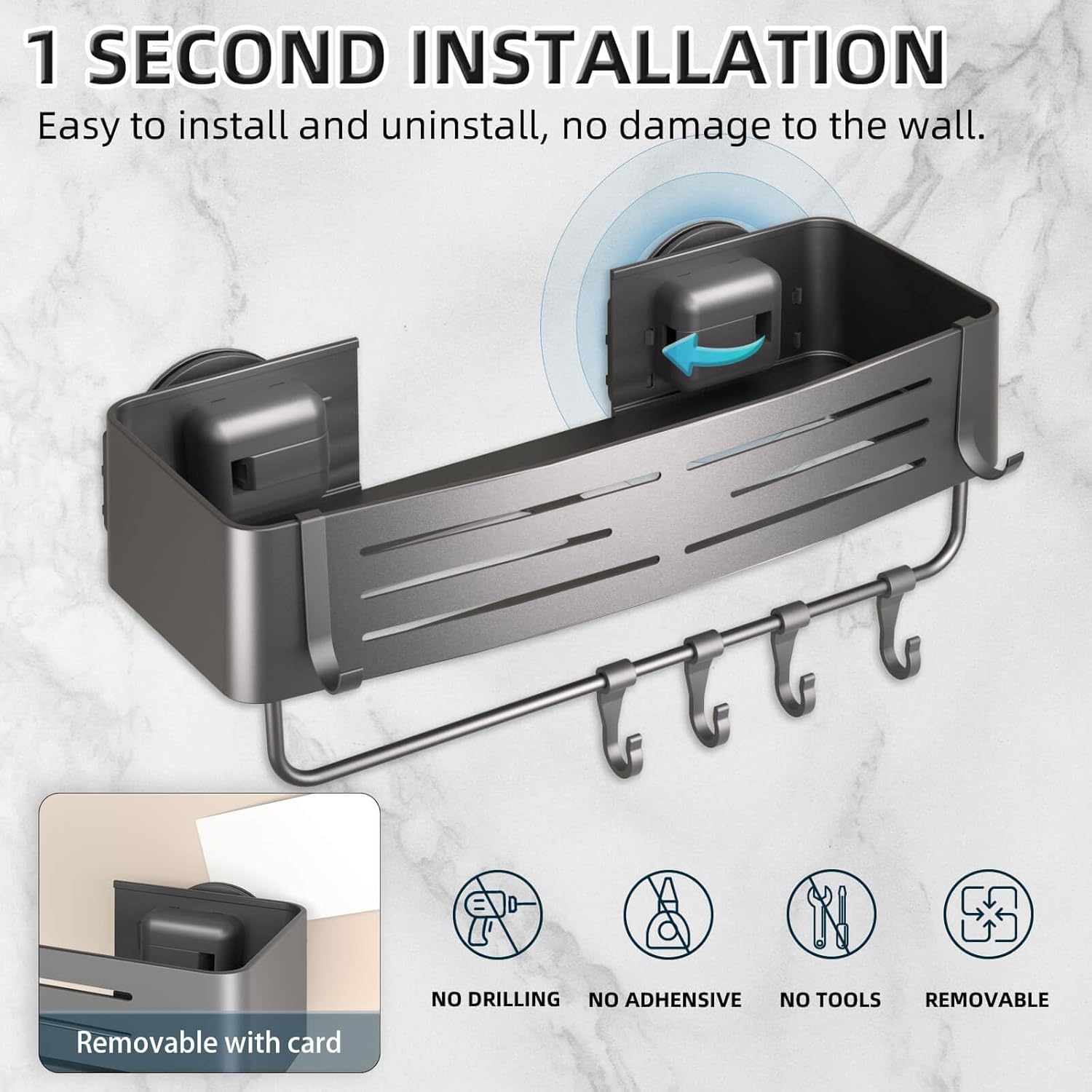- Special Design for Superior Performance: Featuring a bionic octopus tentacle design, the TPE suction cup provides exceptional wall adhesion and can support up to 10 kg (22 lbs). Crafted from high-quality aerospace aluminum, the shower shelf is durable, scratch-resistant, and built to last, ensuring long-term reliability in your bathroom or kitchen