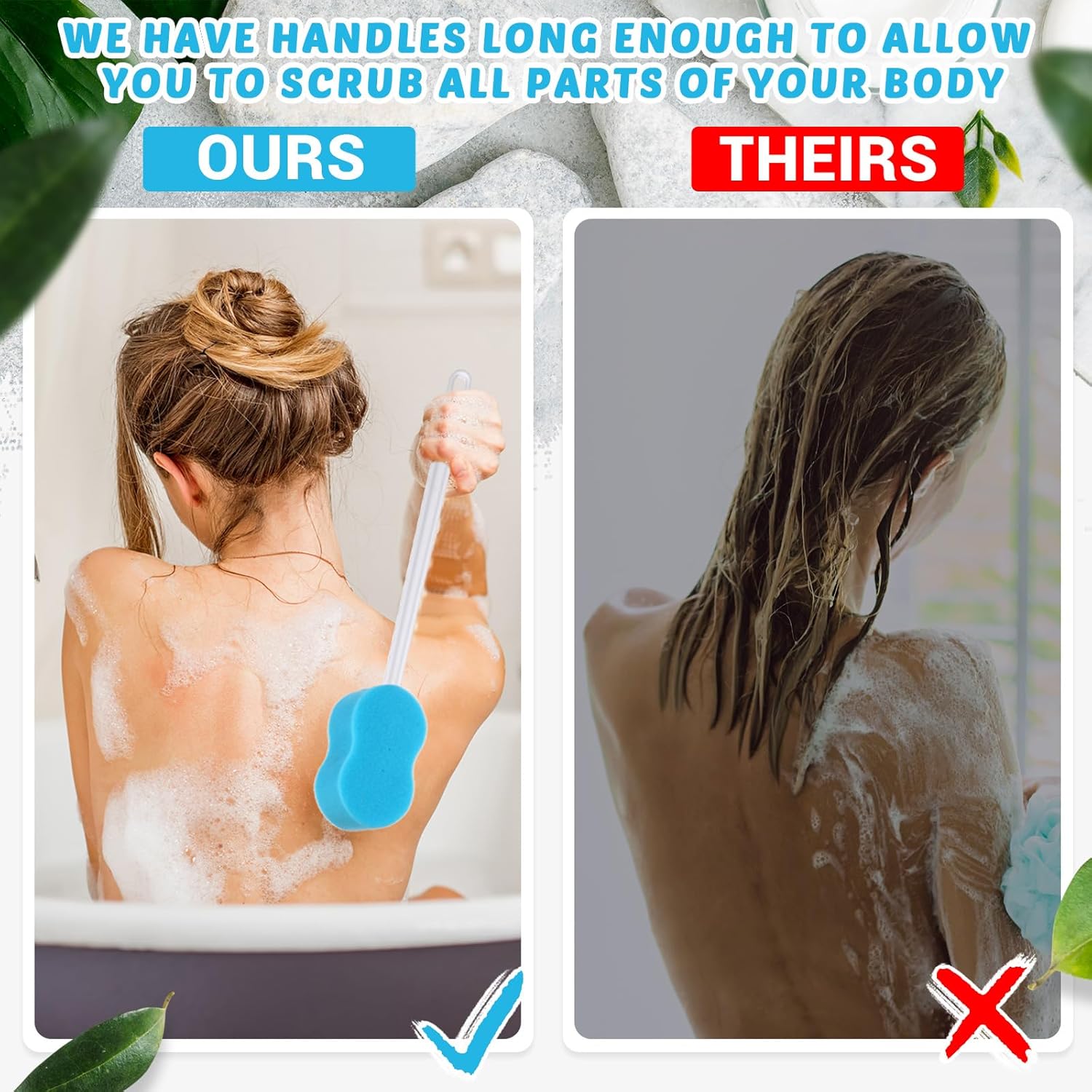 - Useful Body Cleaning Tool: the sponge back scrubber helps to get rich foams, which can be applied to brush your back, legs, butt, feet, etc., making your skin smoother after showering, an ideal cleaning accessory in daily life