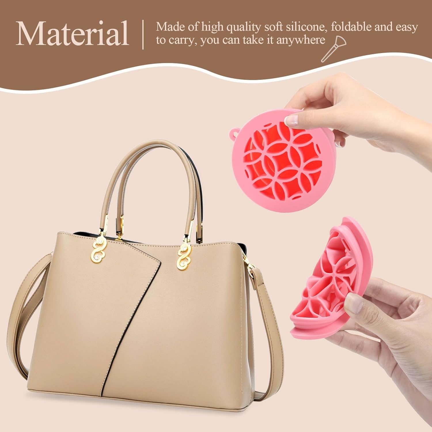 - Lightweight and portable: Folding size: 4*3.5*1.7 inch (10*9*4.3cm); Expanded size: 4*2.6*3.3 inch (10*6.5*8.5 cm). Our compact silicone makeup brush cleaner folds flat for easy storage and fits perfectly in any purse or bag, allowing you to clean brushes anywhere. Makeup cleaner perfect for home use and travel. The makeup brush holder has holes for the hook to use and can be hung up to dry when not in use