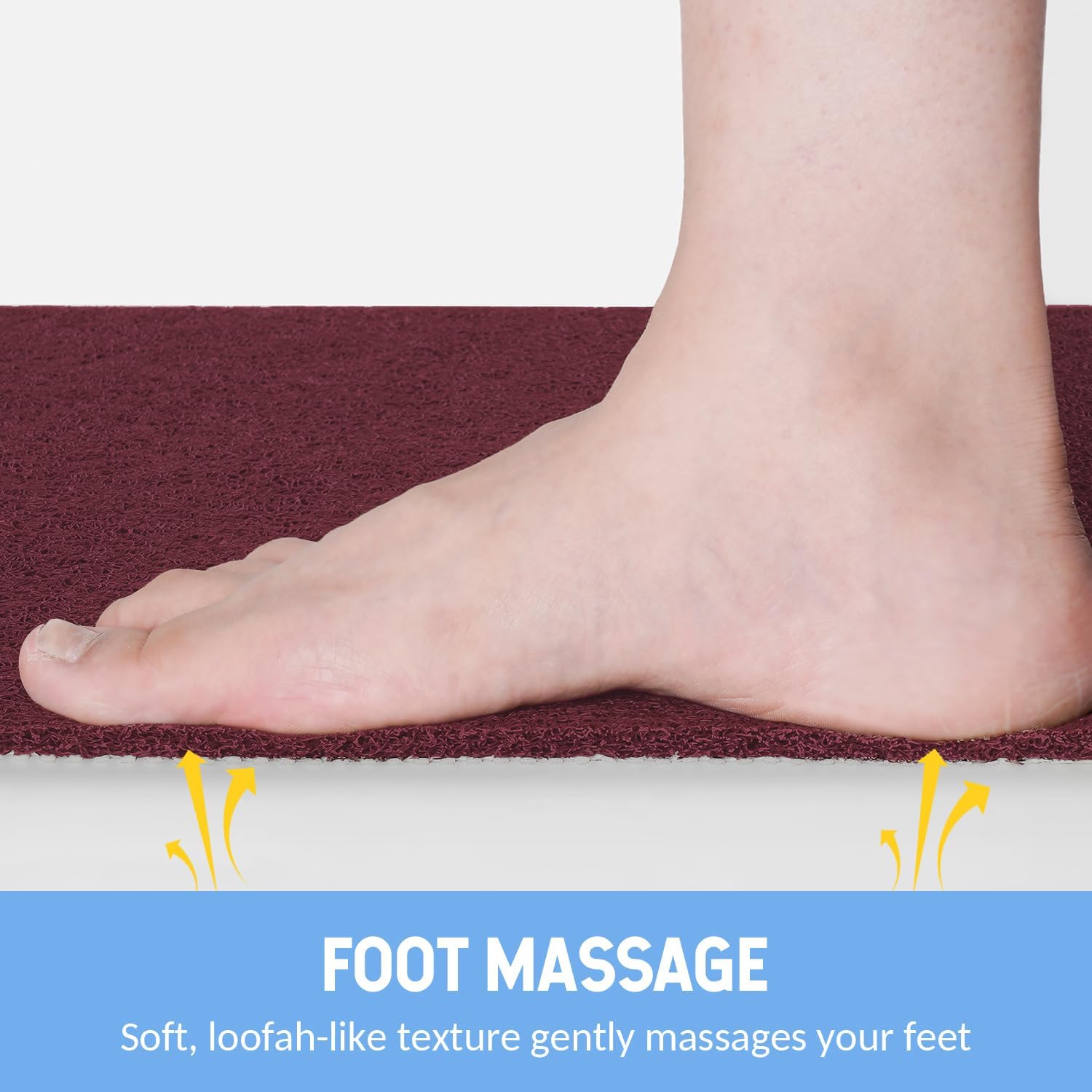 - 【Foot Massage】Hargiis bath mat is 0.4 inch thick to provide comfortable and soft support for your feet. At the same time, the loofah-like texture on the surface of the mat can also gently massage and exfoliate dead skin from your heels and other areas of your feet.