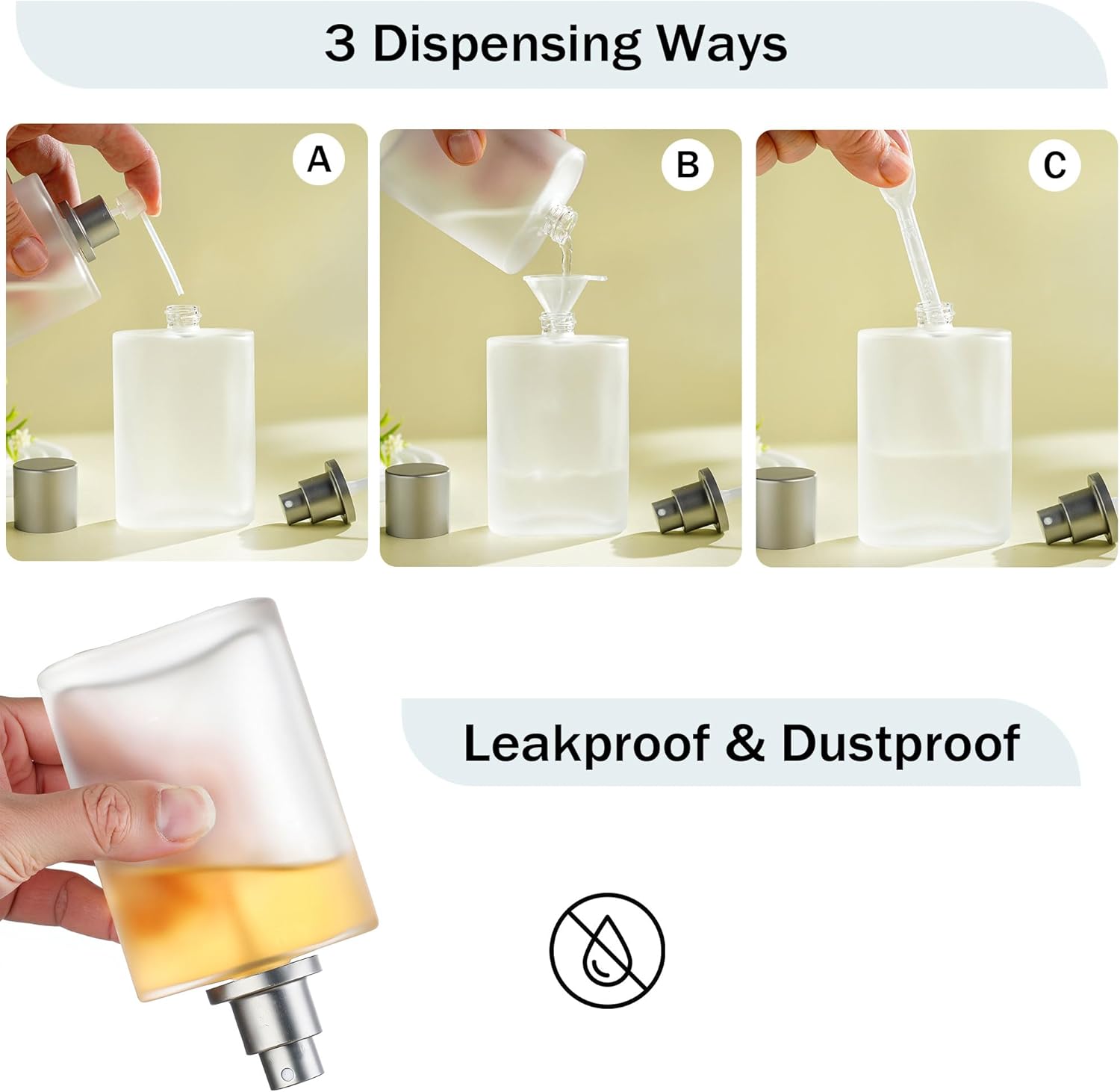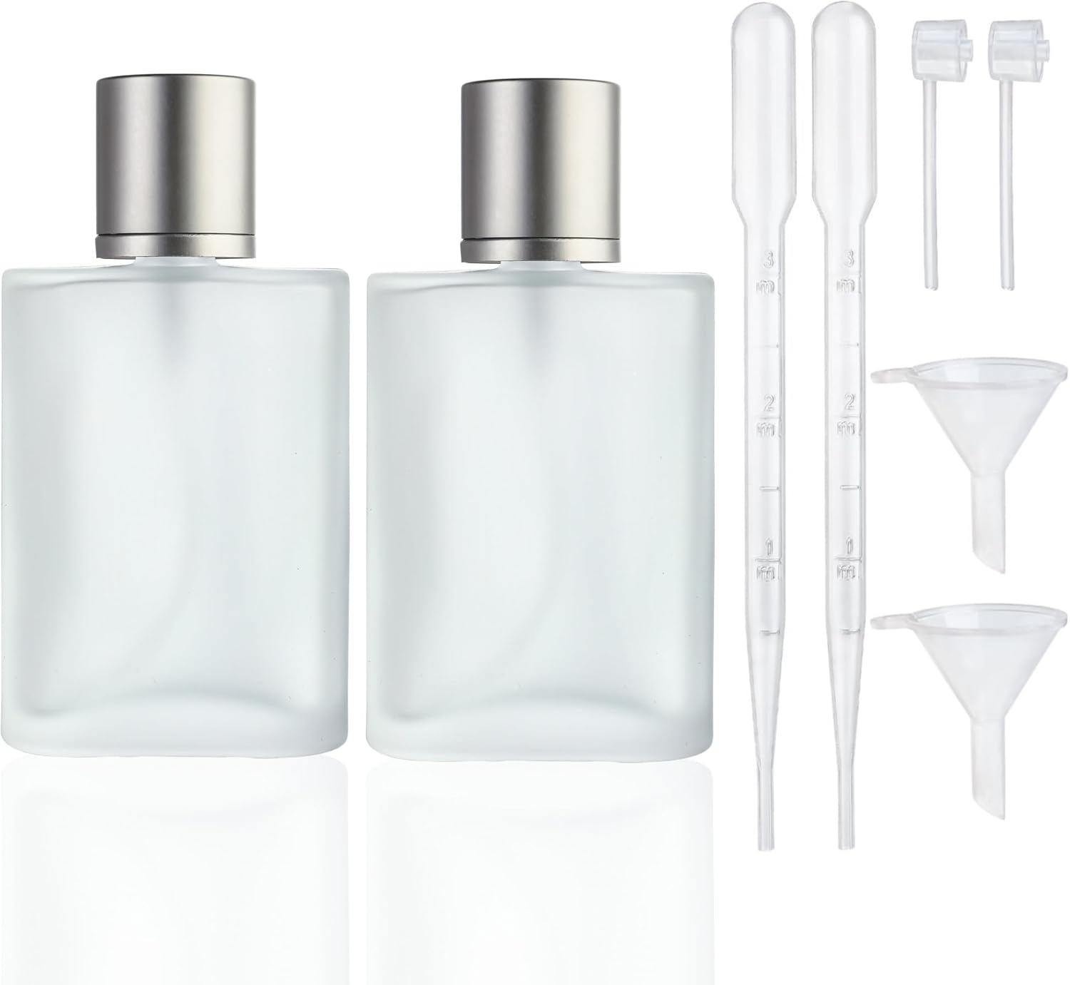 - 2 Pack Value Set:Each 100ml frosted glass bottle offers generous space for perfumes, ideal for daily use, travel, or DIY fragrance blending.