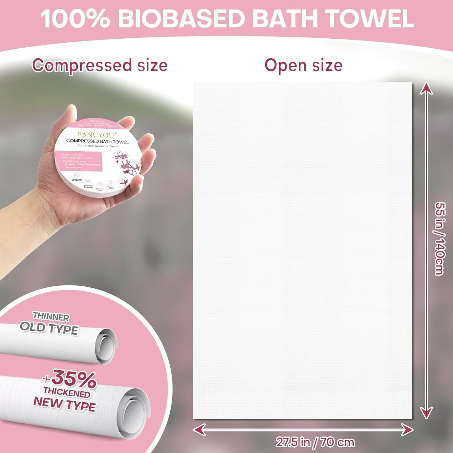 - 《Instant Full-Sized Towel with Water💧》: Activates in seconds – Simply add water, and the tablet expands into a soft, full-sized towel – no waiting, no hassle!.Ampliative size from Diameter 4" (10cm) to : 55" x27.5" (140 x 70cm).