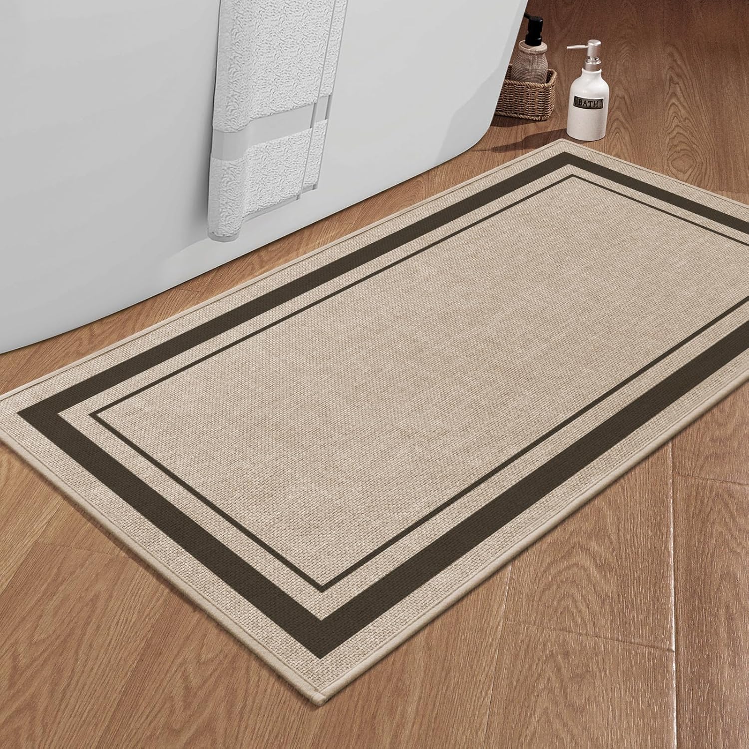 chakme Bathroom Rugs Mat 47x24, Ultra Thin Non Slip Bath Mat Large Quick Dry Absorbent Bath Mat for Bathroom Floor, (Light Beige, 47"x24")