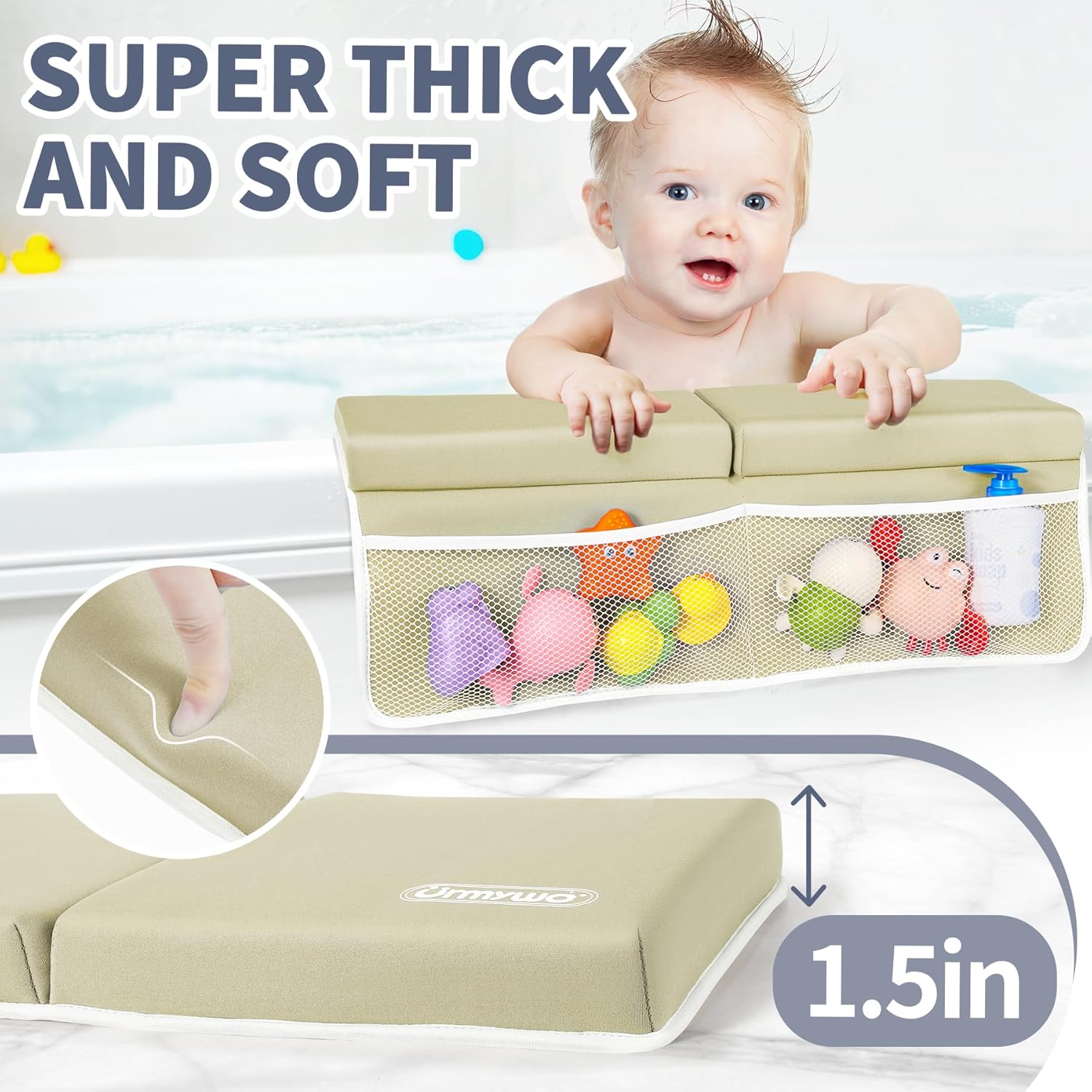 URMYWO Bath Kneeler and Elbow Rest Pad Set - 1.5" Thick Baby Bath Kneeler Pads with Toys Organizer, Anti-Slip Cozy Knee & Arm Support Bathtub Mat, Quick Dry Kneeling Pad for Baby Bath Time