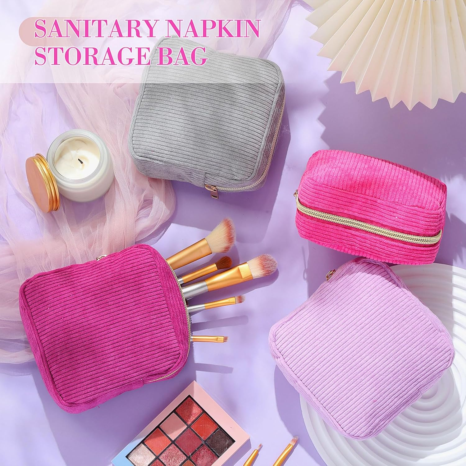 - Ideal Size: each corduroy sanitary napkin storage bag is approx 4.72 x 4.72 x 1.97 inches, suitable for organizing your backpack or purses; Their suitable size allows you to keep your cosmetics, toiletries, and other small items sorted, making them quick and easy to find
