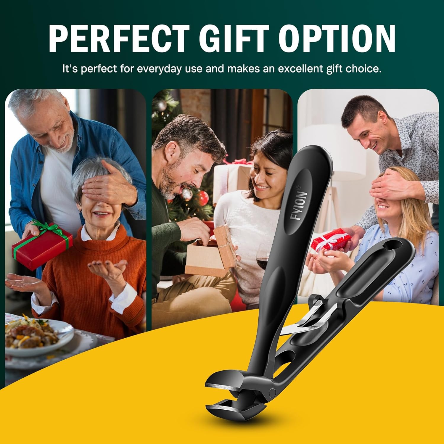FVION Angled Toenail Clippers for Thick Nails – Extra Large Nail Clippers for Seniors, Heavy Duty Toe Nail Cutter for Men & Women with Catcher and Easy Grip Handle - Black