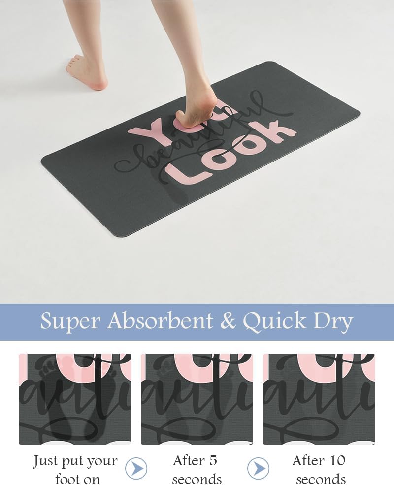 - Absorbent & Stain Resistant: Its specially engineered nano-porous smooth surface instantly absorbs dripping water, leaving no conspicuous watermarks or stains. Whether stepping out of the shower or washing your hands, you can trust this super absorbent bath mat to keep your space clean and safe.
