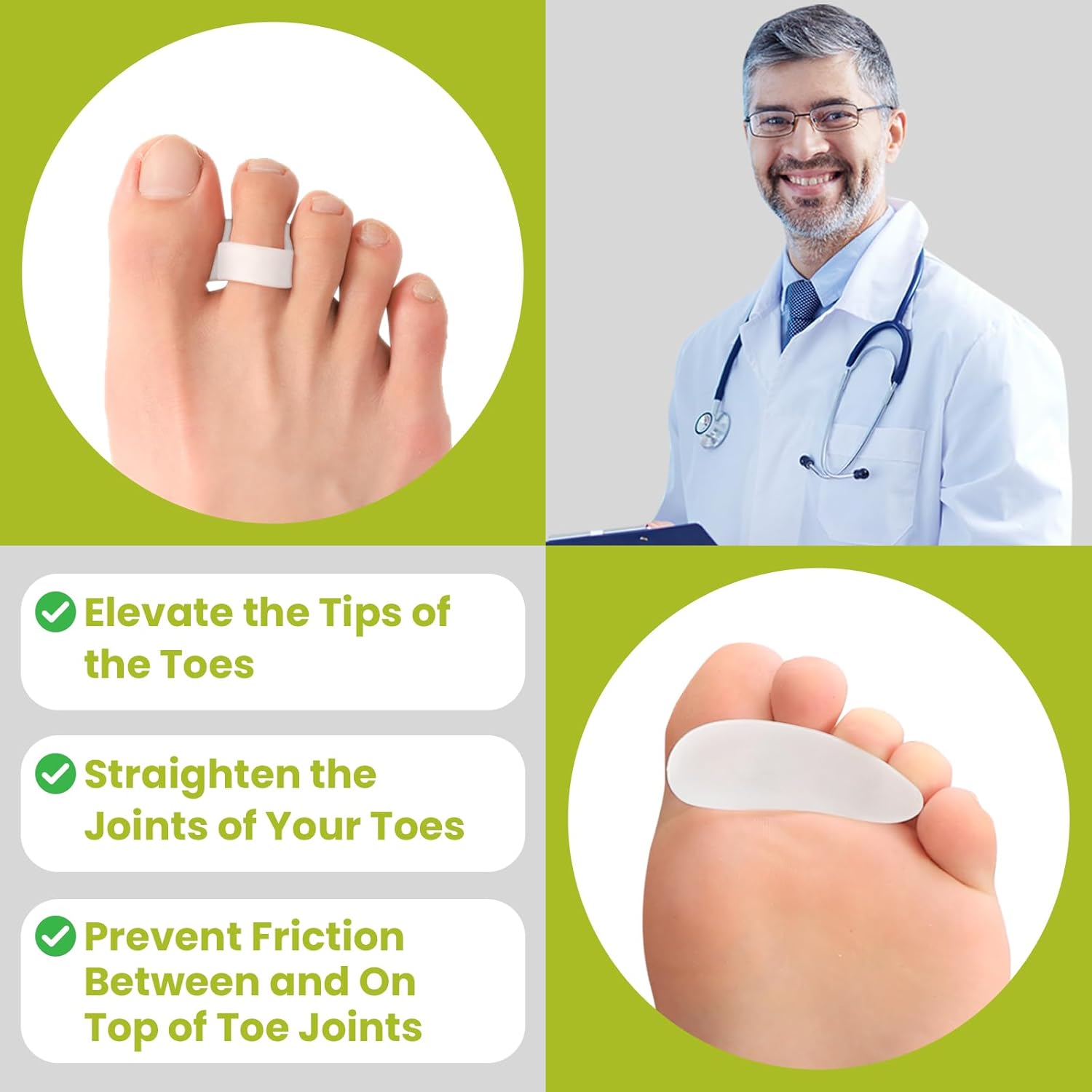 - Pain Relief with Gentle Pressure - Hammer toes can cause the second, third or fourth toe to bend or overlap uncomfortably, which can cause discomfort during movement, activity or friction. Hammertoe silicone provides cushioning and support for the toes, relieving toe pain. In addition, they help relieve pressure and pain caused by corns, calluses, injuries and more.