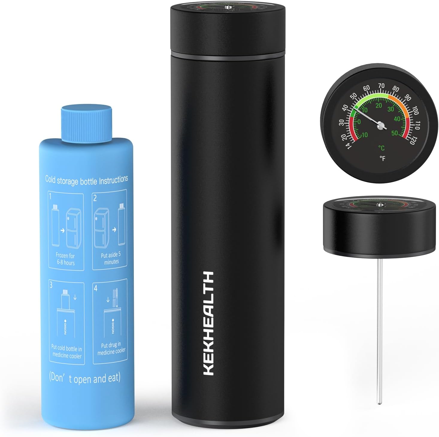 - 60-Hour Medical-Grade Protection: This insulin cooler uses 304 stainless steel and vacuum insulation to maintain critical 36-79°F temperatures for diabetes medications. The combination of a blue gel bottle (36-79°F/48H) and a white emergency bottle (36-79°F/12H) keeps medications at a safe temperature for up to 60 hours
