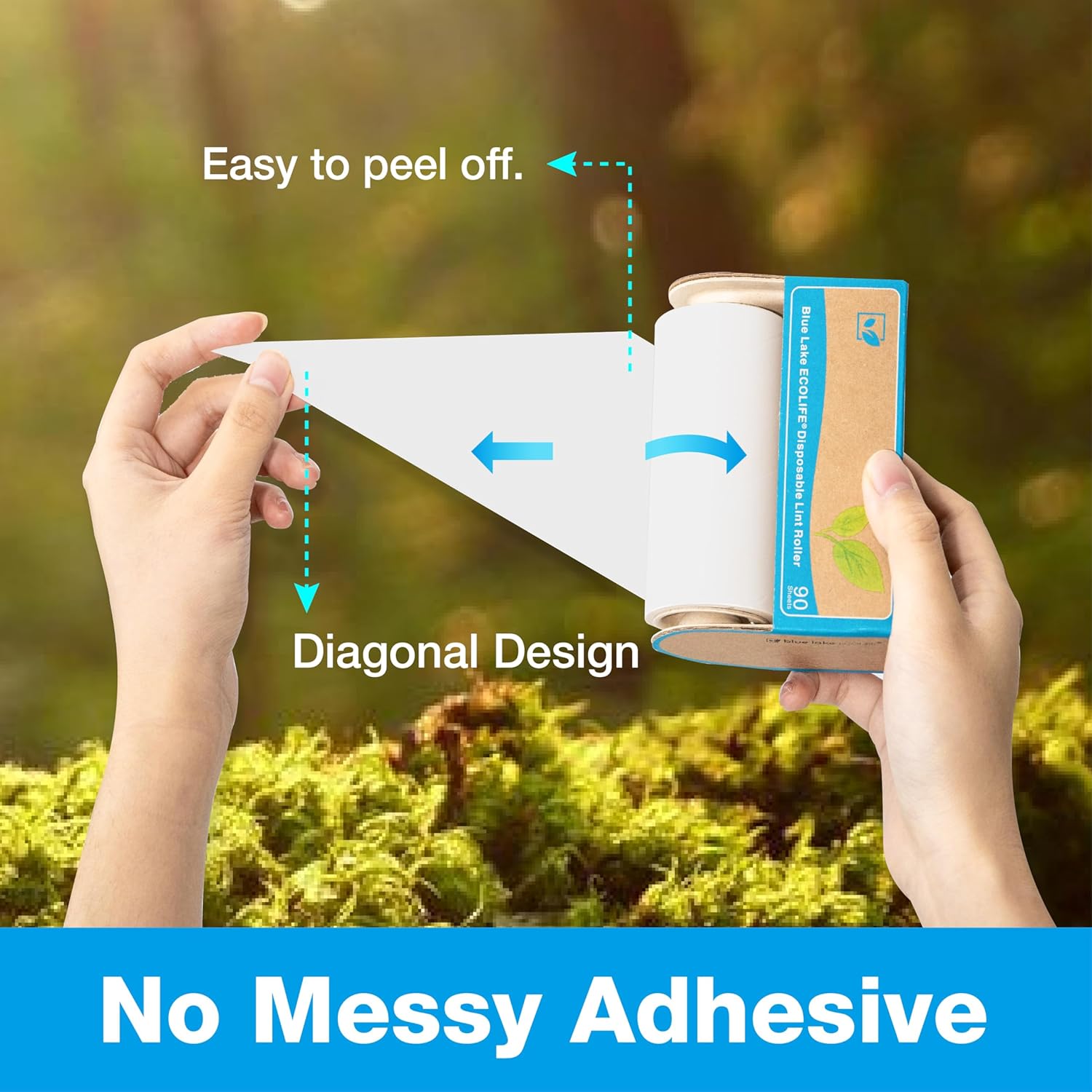 Blue Lake ECOLIFE Plastic-Free Lint Roller – 4-Pack (360 Sheets) | Extra Sticky & Eco-Lint Remover| Ideal for Clothes, Furniture & Carpet(4 Pack-360 Sheets)