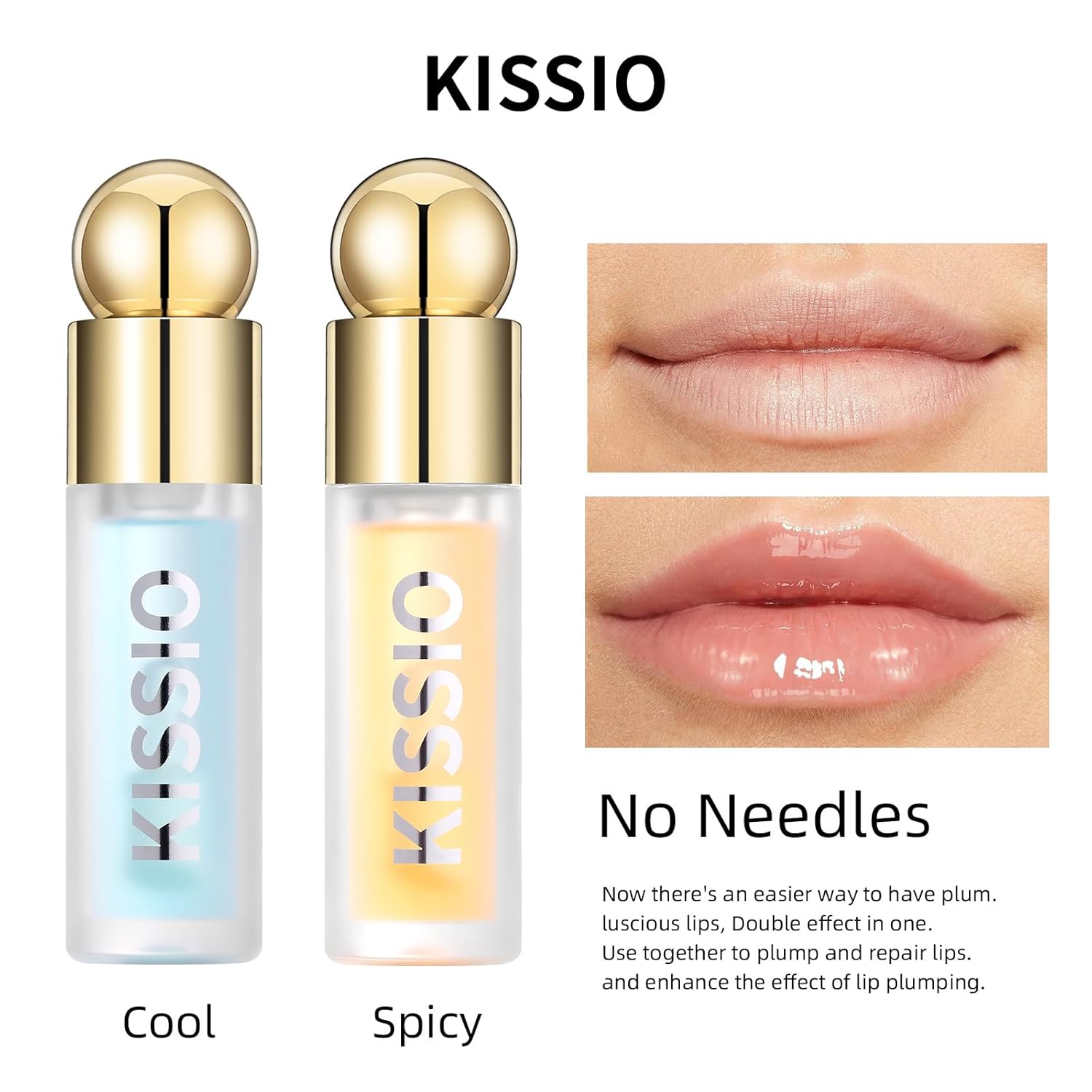KISSIO Plumping Lip Gloss,Plumping,Moisturize and Elasticity,Lip Plumper and Lip Care for Day and Night Use,with Ginger,Peppermint and Jojoba Oil,Clear,10 ml