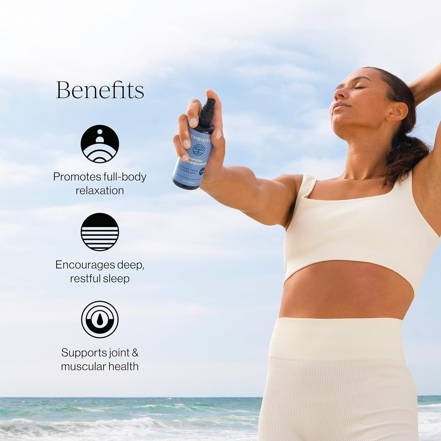 - CYMBIOTIKA Topical Magnesium Oil Spray for Body, USA Made, Supplement for Leg Cramps, Muscle, Joint Health & Sleep Support, Includes Magnesium Chloride, Lavender Extract, Aloe Vera, 2pck (6.8 fl oz)