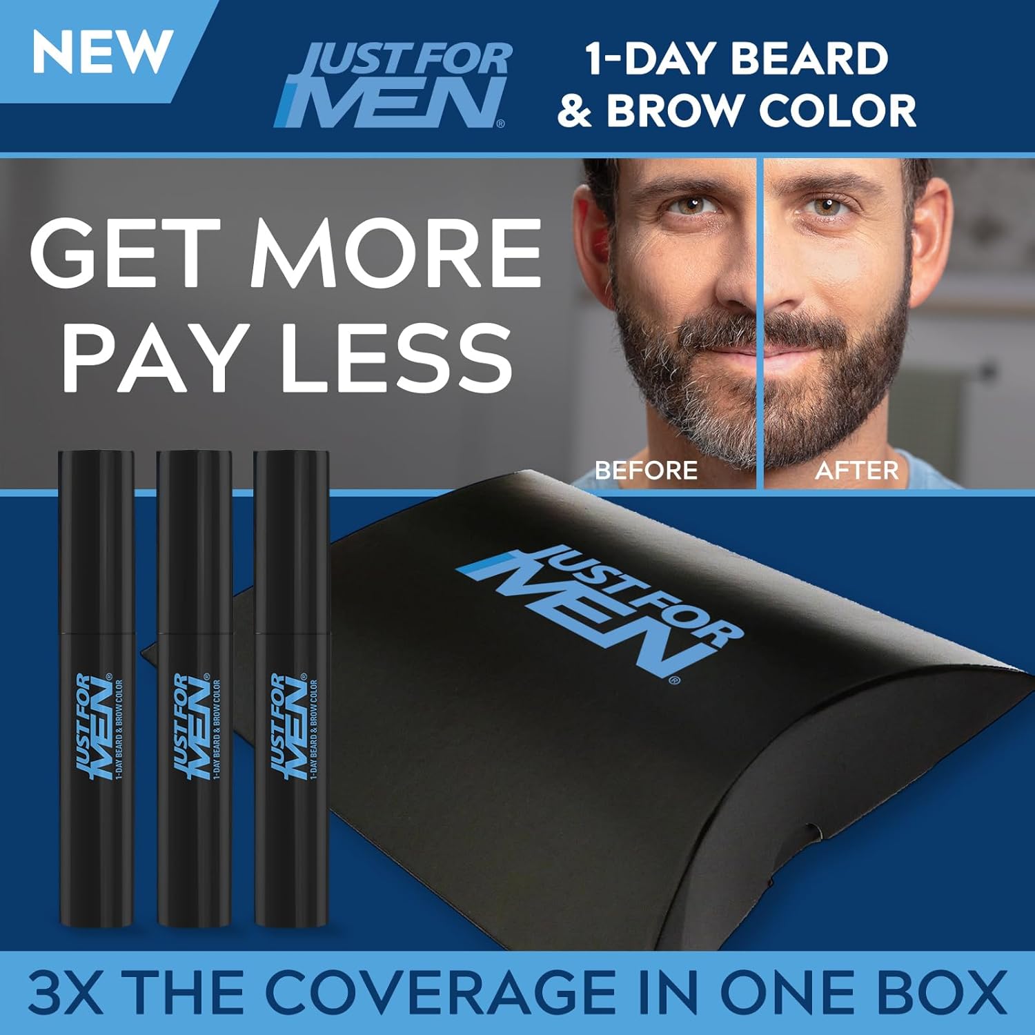 - Just for Men 1-Day Beard & Brow Color, is a brush-in/wash-out dye-free color to temporarily cover grays and fill in thin, patchy areas for a thicker, well-defined look