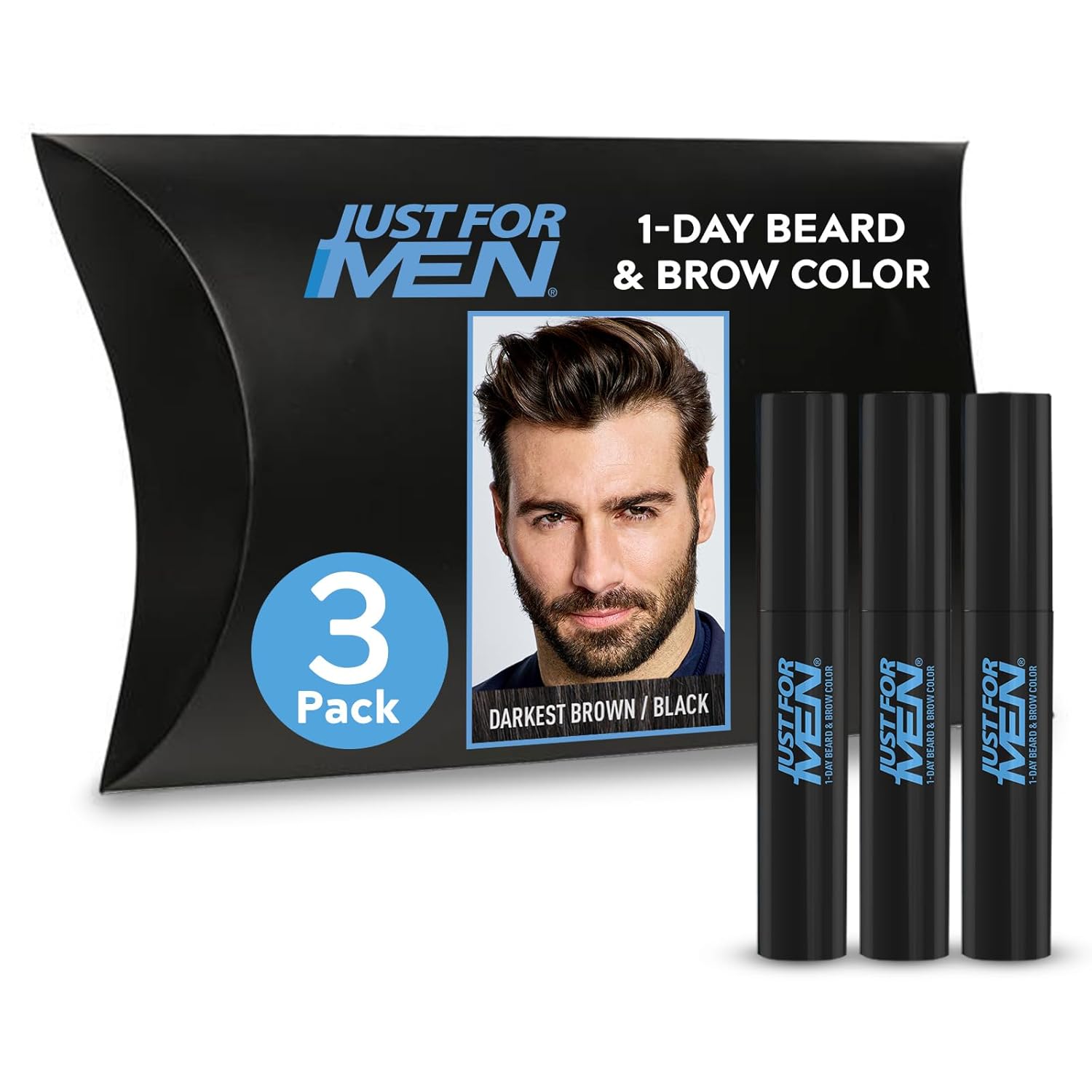 Just for Men 1-Day Beard & Brow Color, Temporary Color for Beard and Eyebrows, For a Fuller, Well-Defined Look, Up to 30 Applications, Darkest Brown/Black, Ships in Eco-Friendly Packaging (Pack of 3)