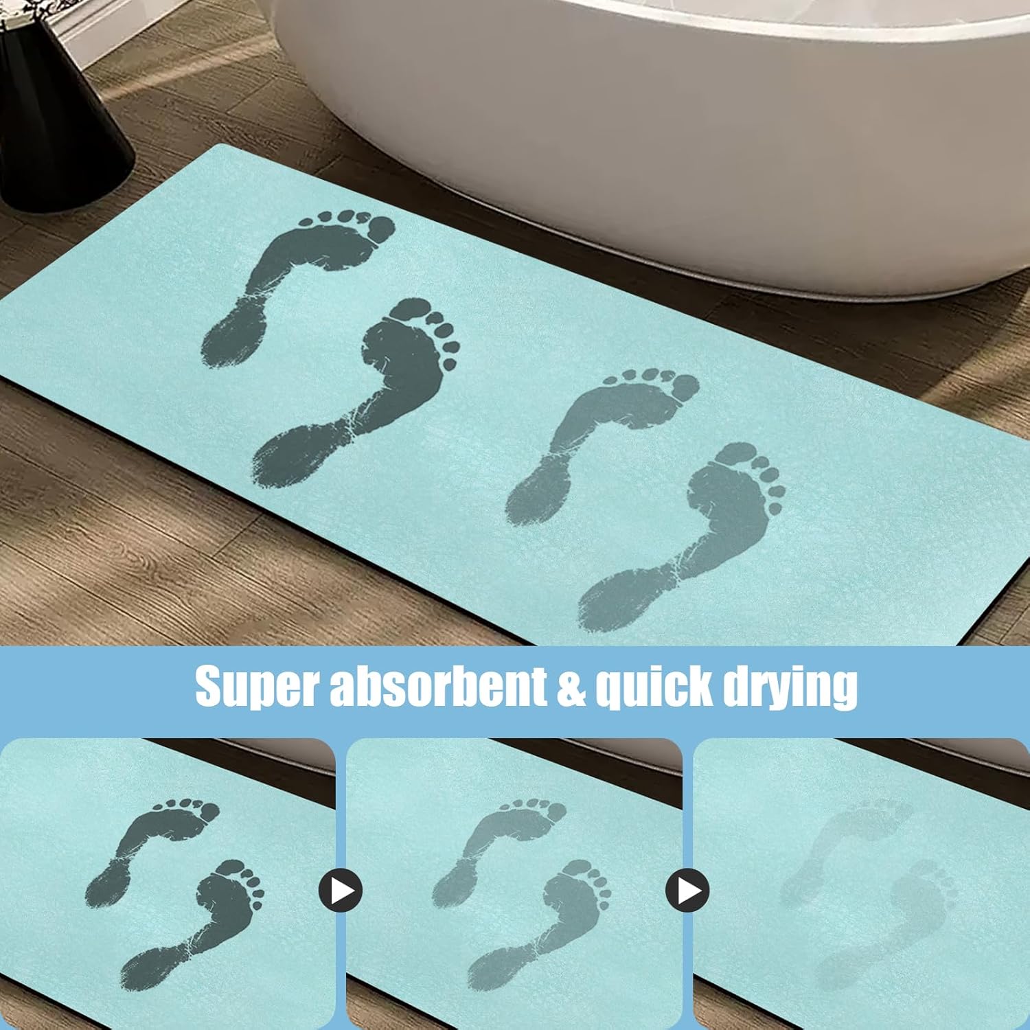 - 【Super Absorbent & Quick Dry】These bathroom mat quick dry are designed with a Faux suede surface, Sabsorbs water efficiently, no water accumulation. bathroom rug absorbs dripping water in 3 seconds when you come out from the bathtub or shower, With its quick-drying design makes the bath mat dry quickly, Keep the floor clean and dry to keep your home comfortable and clean.