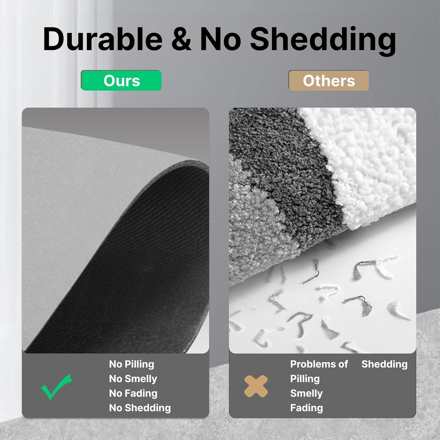 - 【Super Absorbent & Quick Dry】These bathroom mat quick dry are designed with a Faux suede surface, Sabsorbs water efficiently, no water accumulation. bathroom rug absorbs dripping water in 3 seconds when you come out from the bathtub or shower, With its quick-drying design makes the bath mat dry quickly, Keep the floor clean and dry to keep your home comfortable and clean.