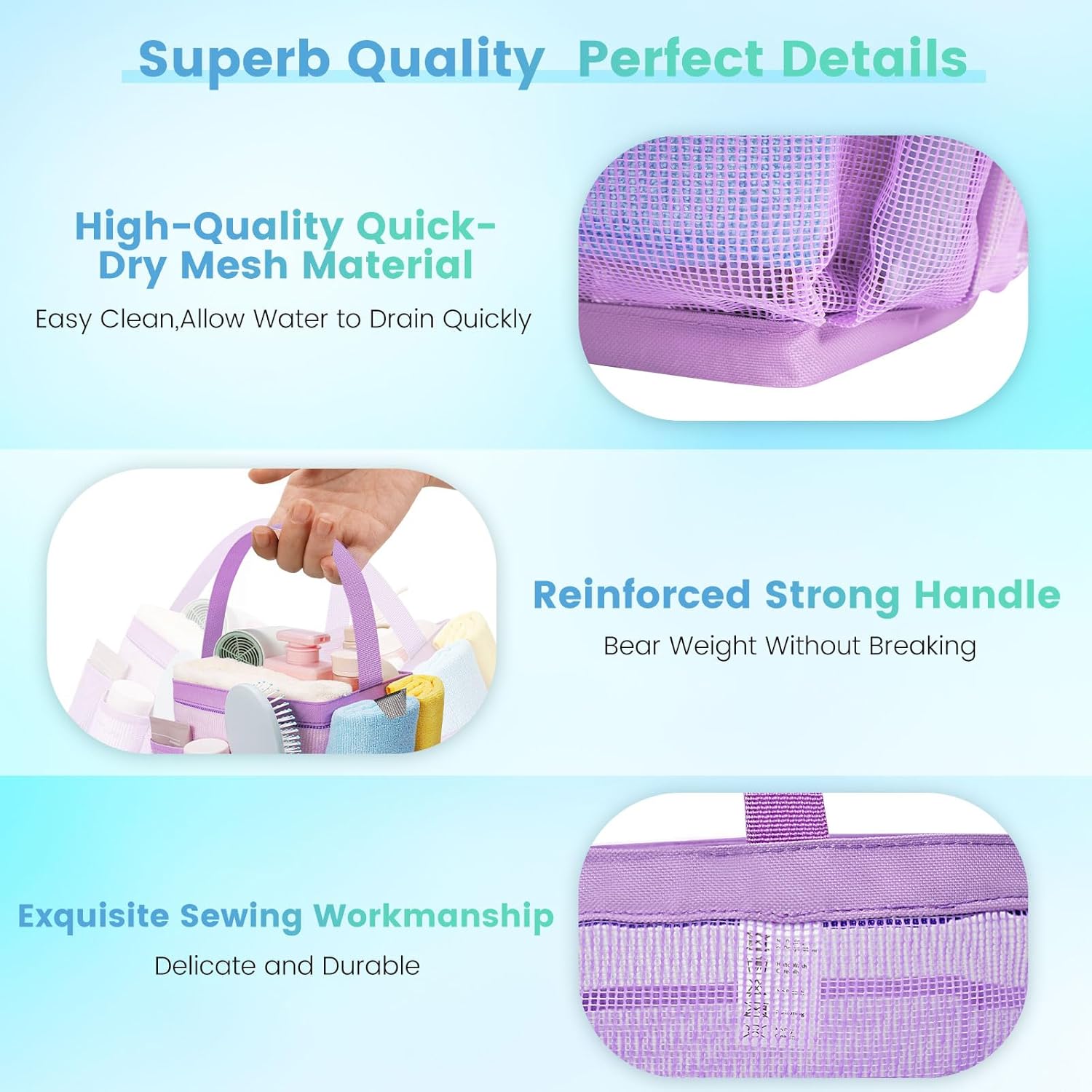- Quick Drying, Effortless CleaningďźThe shower caddy dorm will drain quickly and dry up naturally once it gets wet, due to the characteristics of breathable mesh fabric, preventing water buildup and odor. Directly rinse the mesh tote bag under the tap or use the washing machine instead.