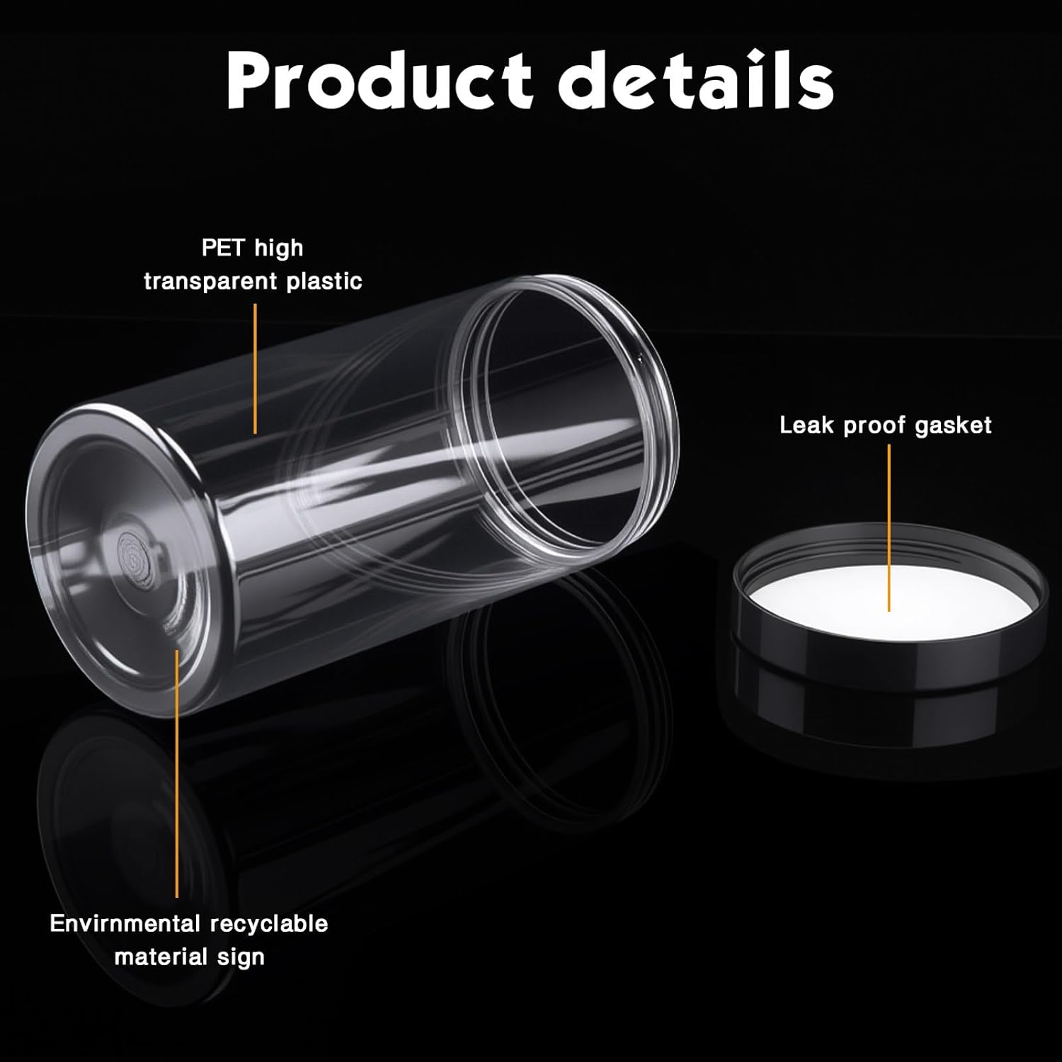 - Reliable Quality: these round containers adopt quality PET plastic, not easy to be broken; These straight sided jars allow for easy filling and removing