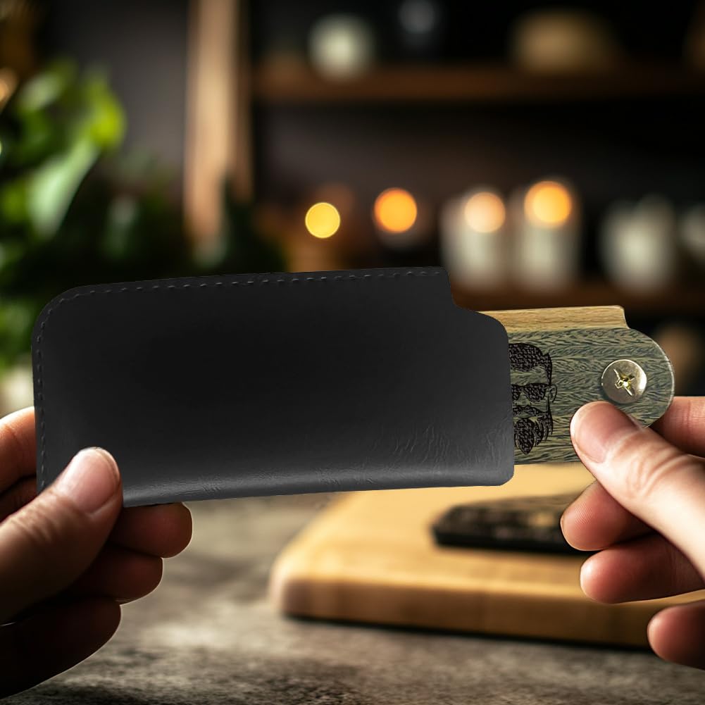 CHGCRAFT The Beard Man Folding Wooden Comb Foldable Beard Combs Carved Wooden Comb Fine Tooth Hair Combs with Imitation Leather Carrying Pouch for Men Grooming Mustaches Head Hair Husband Gift